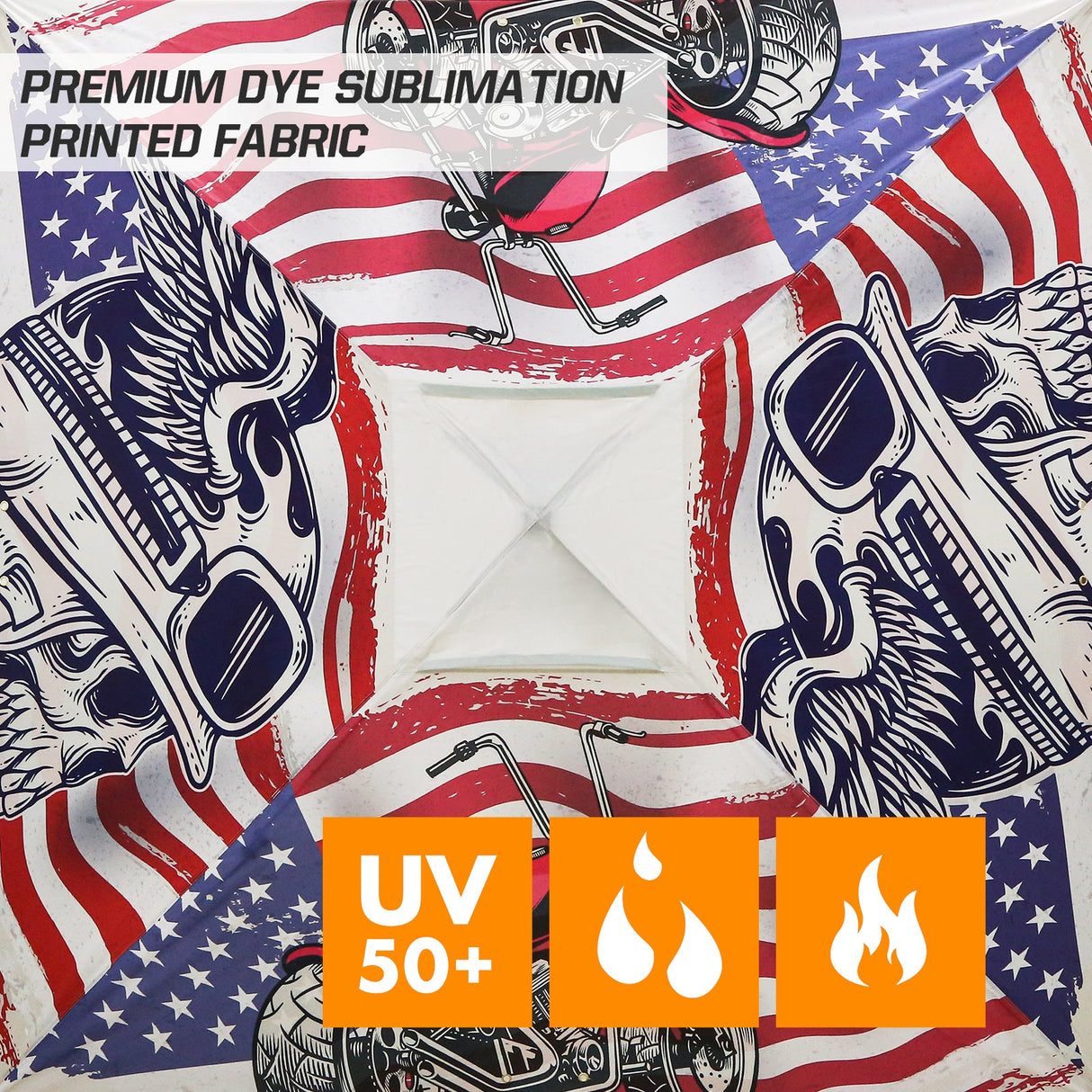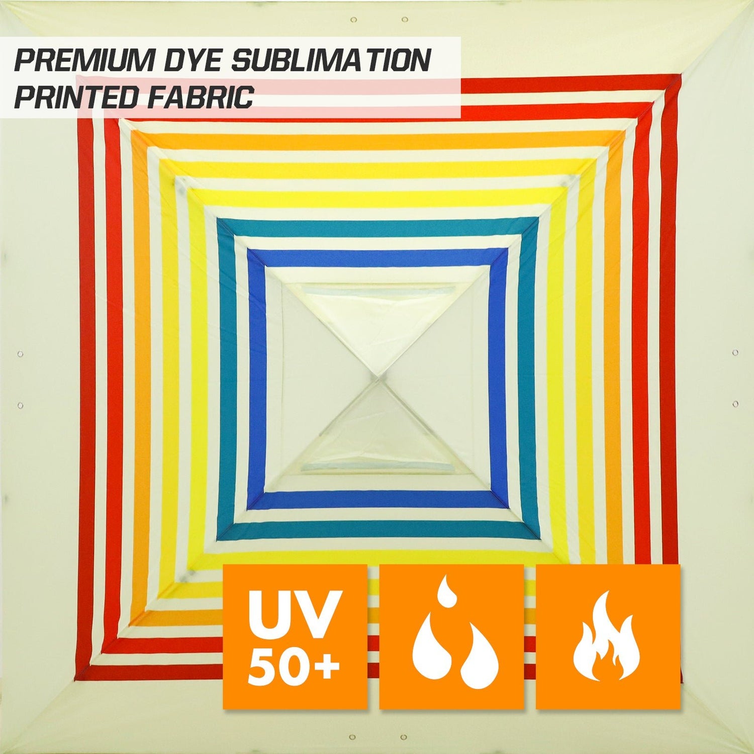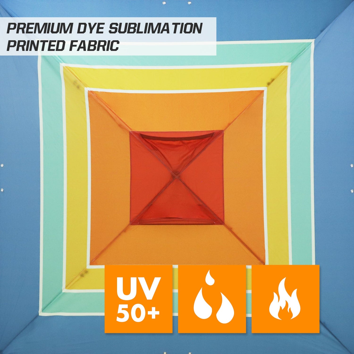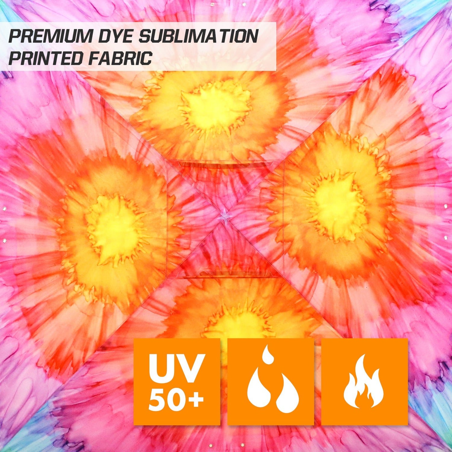 VIBRANT SUBLIMATED FABRIC: Bring bold, colorful designs and fun colors to your next outdoor party or event. Stand out from the crowd with our unique ShadeGraphix 100% coverage, digitally-printed sublimated canopy tents. Be bold. Be Different.