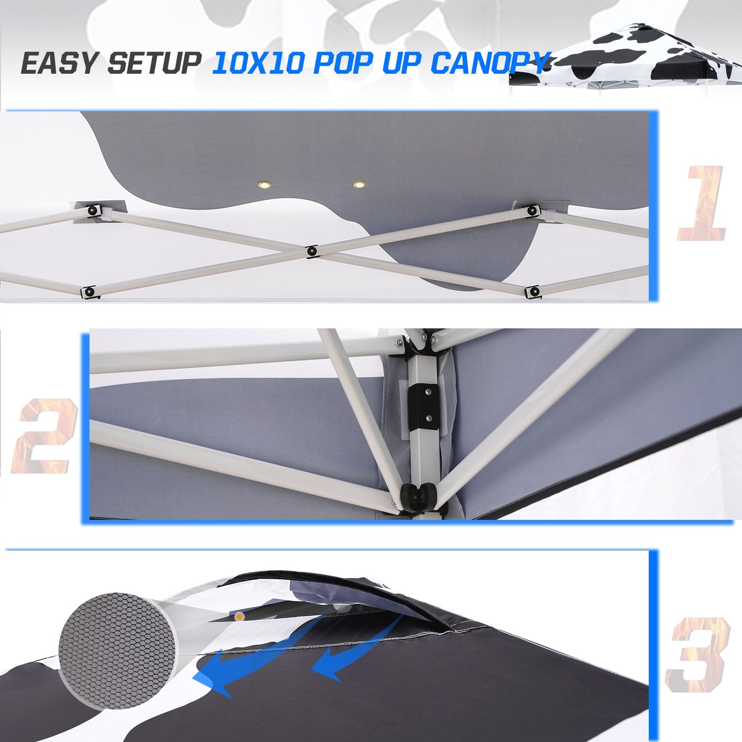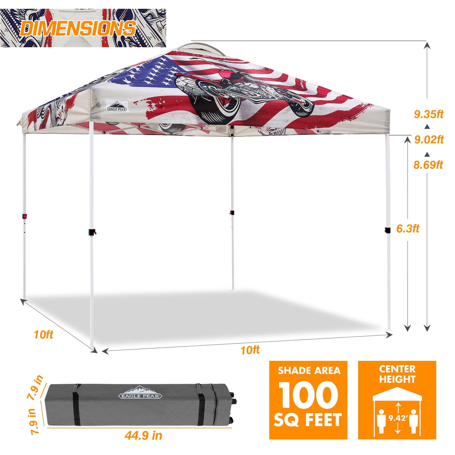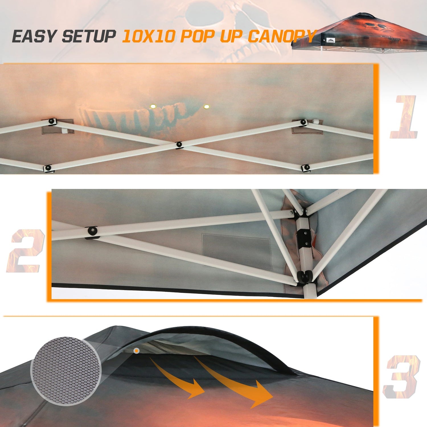 Easy Setup Straight Leg 10x10 Pop Up Canopy Tent Graphix Top w/ 100 sqft of Shade