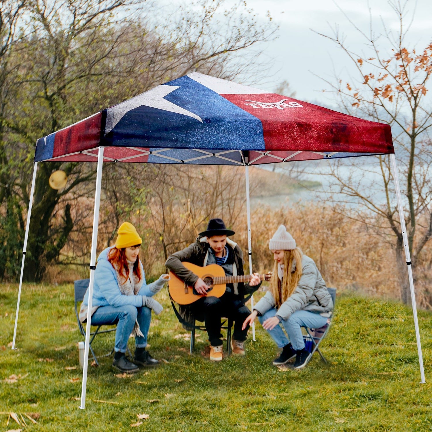 SHADE GRAPHiX Slant Leg 10x10 Pop Up Canopy Tent, 10x10 Base 8x8 Top (Texas Pride)
