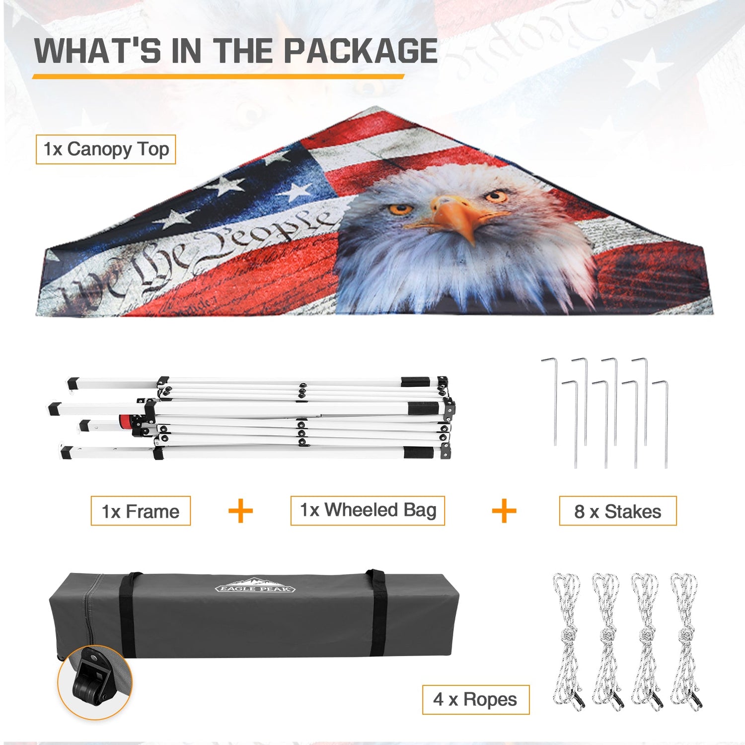 EAGLE PEAK 10x10 Slant Leg Pop-up Canopy Tent Easy One Person Setup Instant Outdoor Beach Canopy Folding Portable Sports Shelter 10x10 Base 8x8 Top (American Icon)