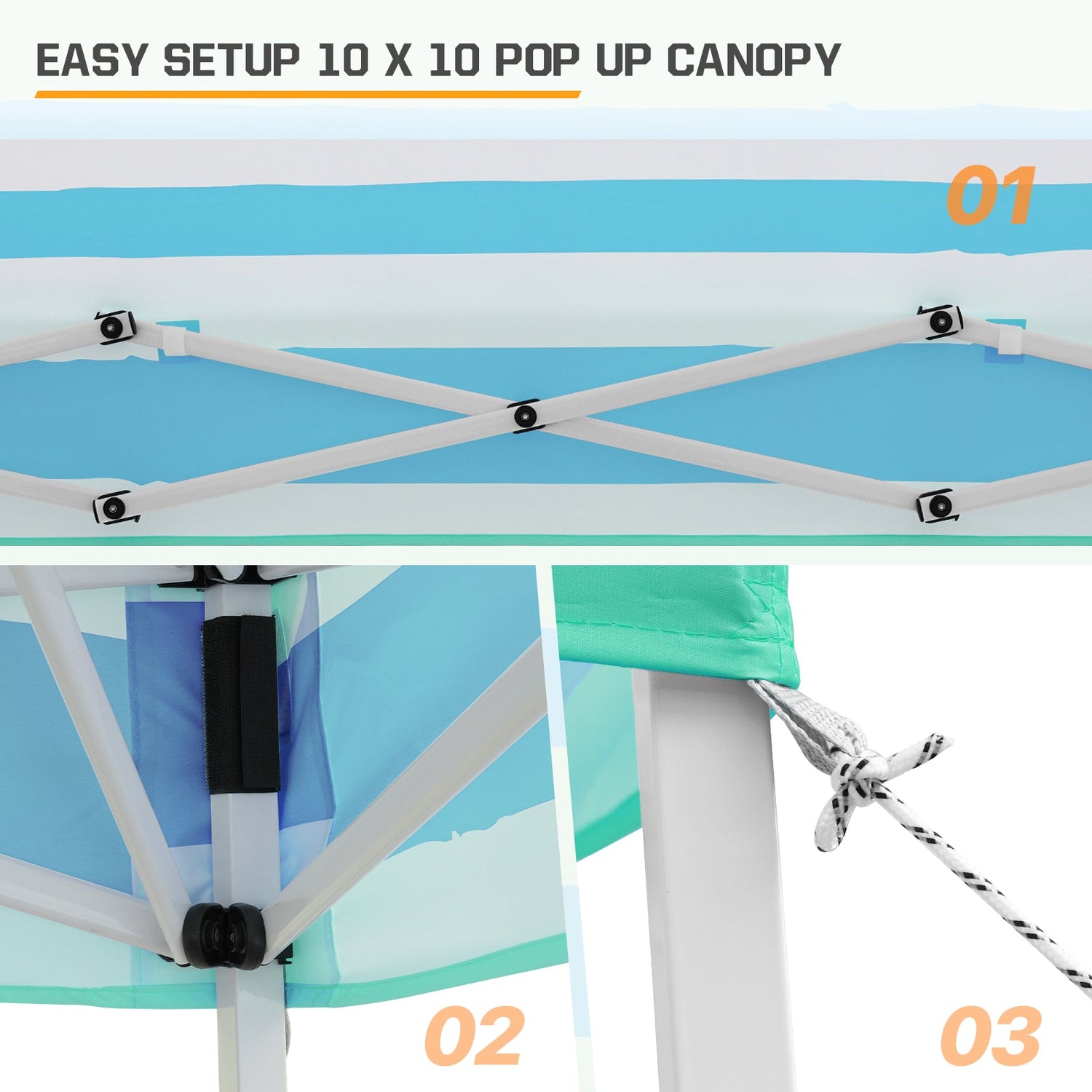 10x10 Slant Leg Pop-up Canopy Tent, 10x10 Base 8x8 Top (Green Blue Stripe)