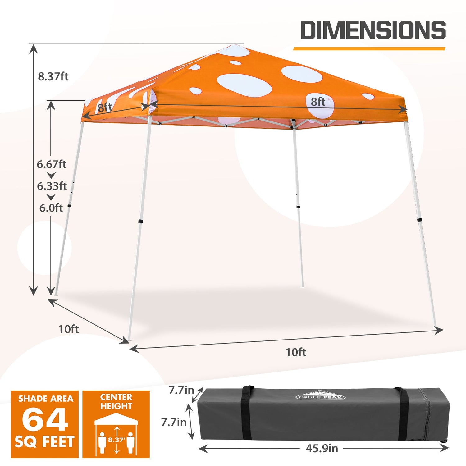 10x10 Slant Leg Pop-up Canopy Tent, 10x10 Base 8x8 Top (Orange Mushroom)