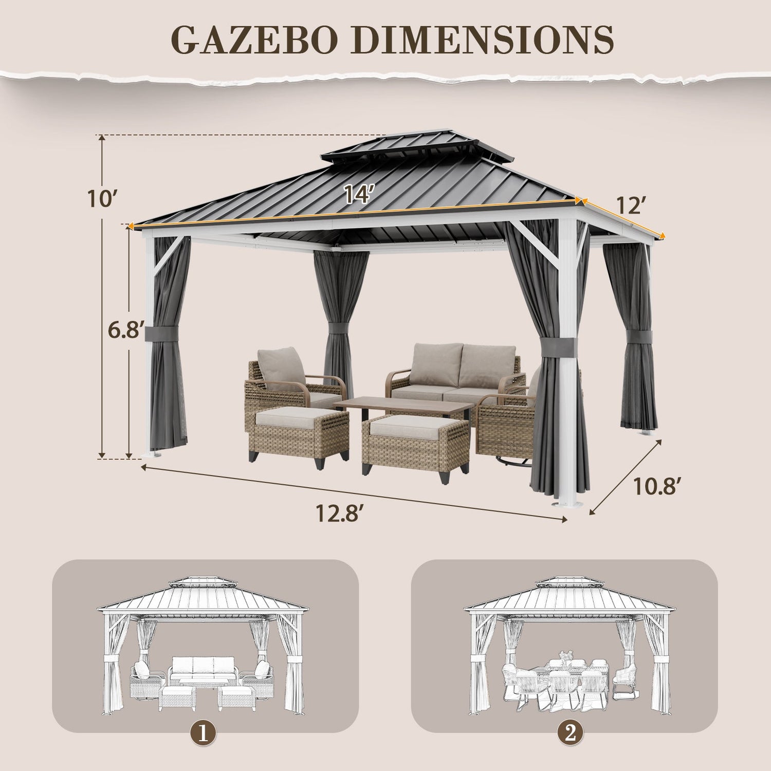 EAGLE PEAK 12x10/12x12/12x14/12x16/12x18/12x20 Hardtop Gazebo, Galvanized Steel Double Roof with Aluminum Frame, Outdoor Pavilion with Netting and Curtains for Patio, Deck, Lawn and Garden