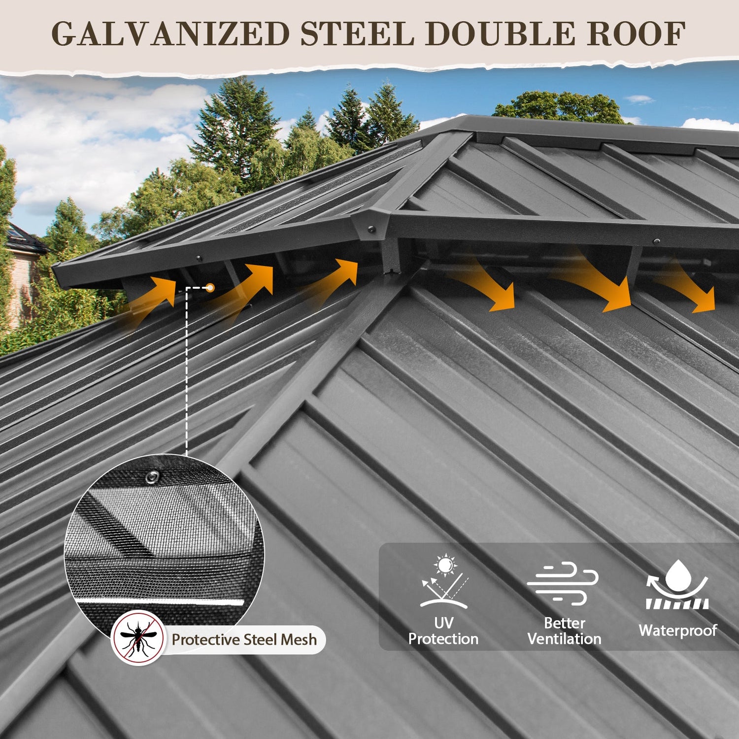 12x10/12x12/12x14/12x16/12x18/12x20 Hardtop Gazebo, Galvanized Steel Double Roof with Aluminum Frame