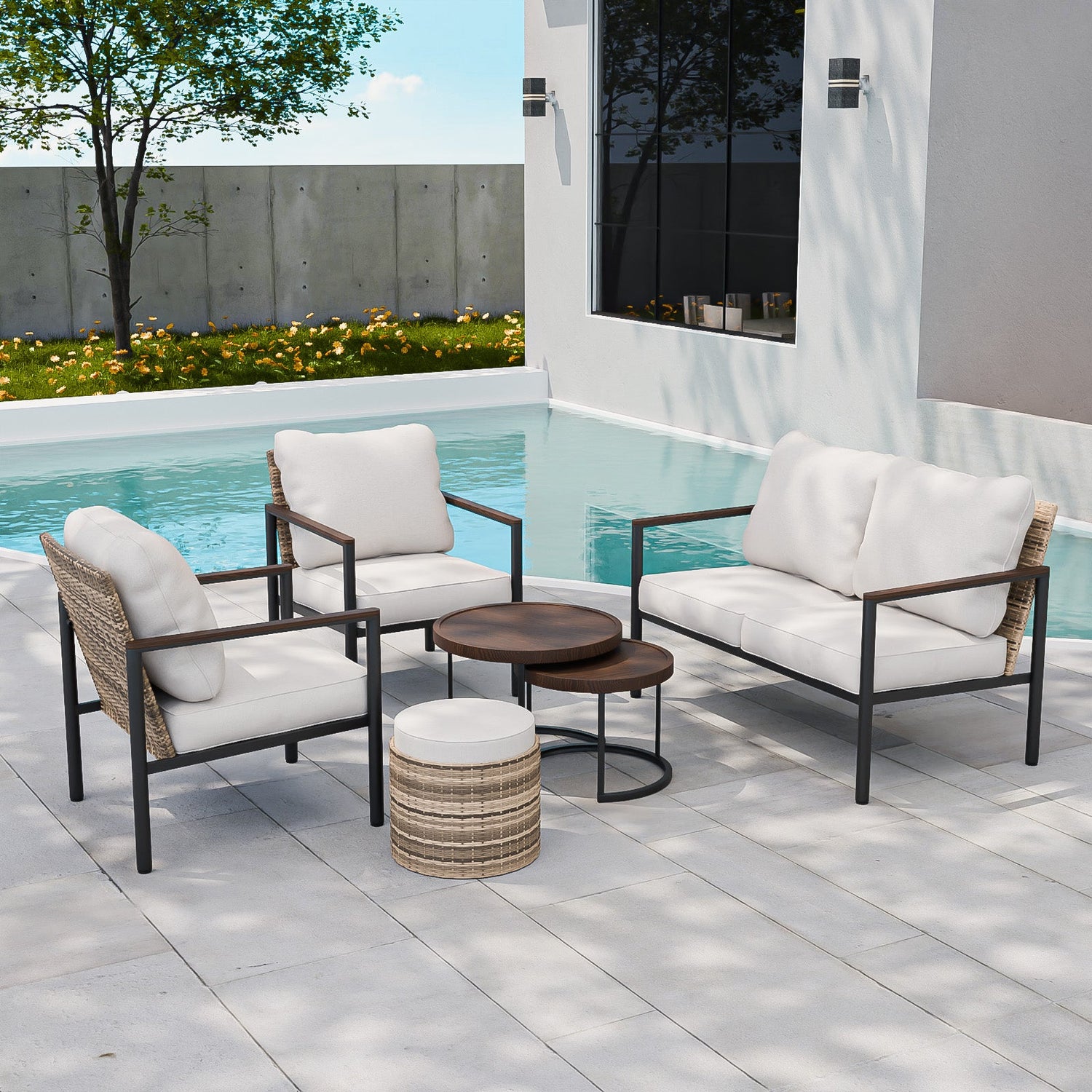 Sunset Dune Outdoor 6 PCS Patio Furniture, 2 Chairs 1 Loveseat 2 Tables Ottoman