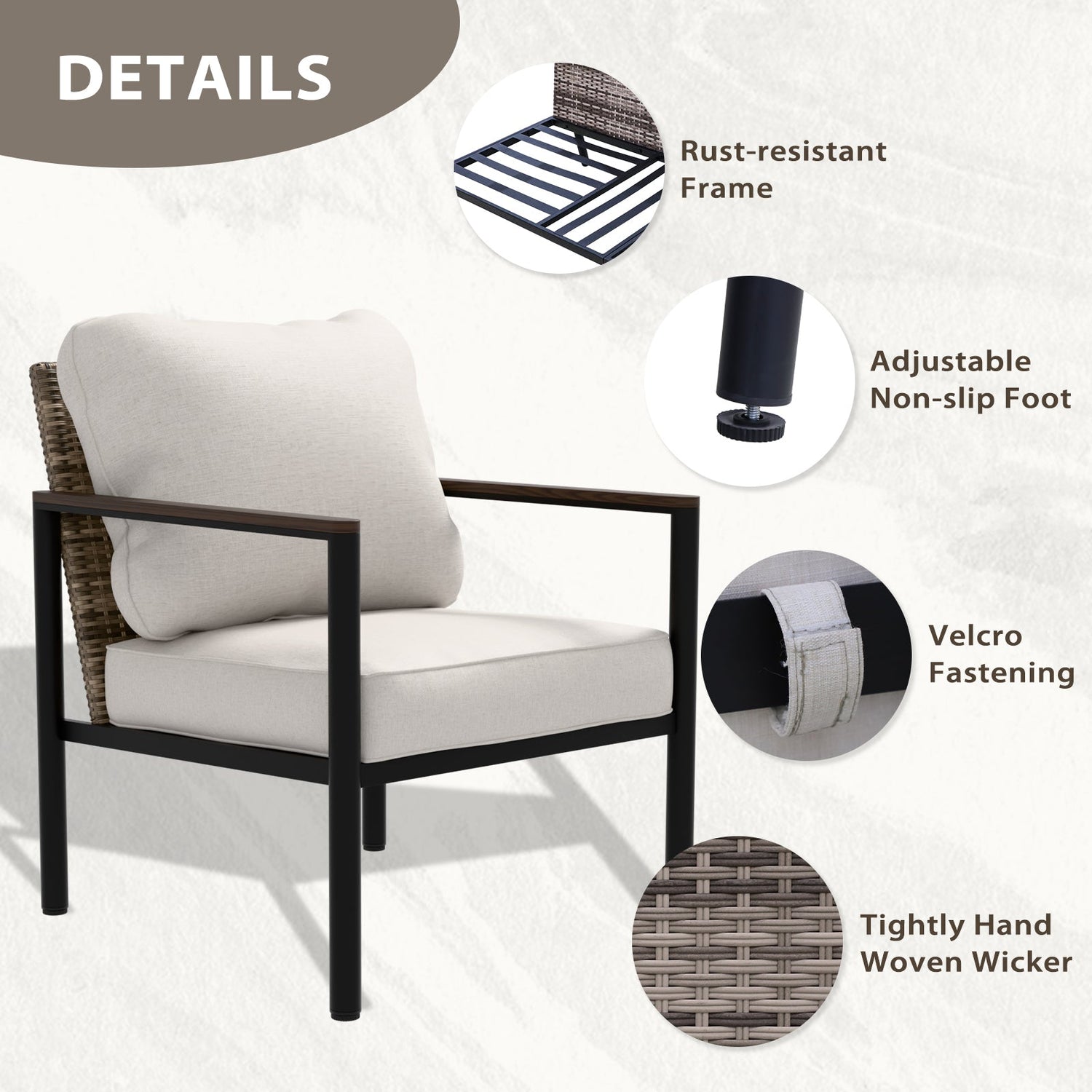 MODERN OUTDOOR LIVING: Sink into plush padded 4 inch thick cushions while the timeless wicker design and soft neutral tones add a chic, inviting touch to your indoor or outdoor space; perfect for relaxing with a book or enjoying a coffee outdoors.