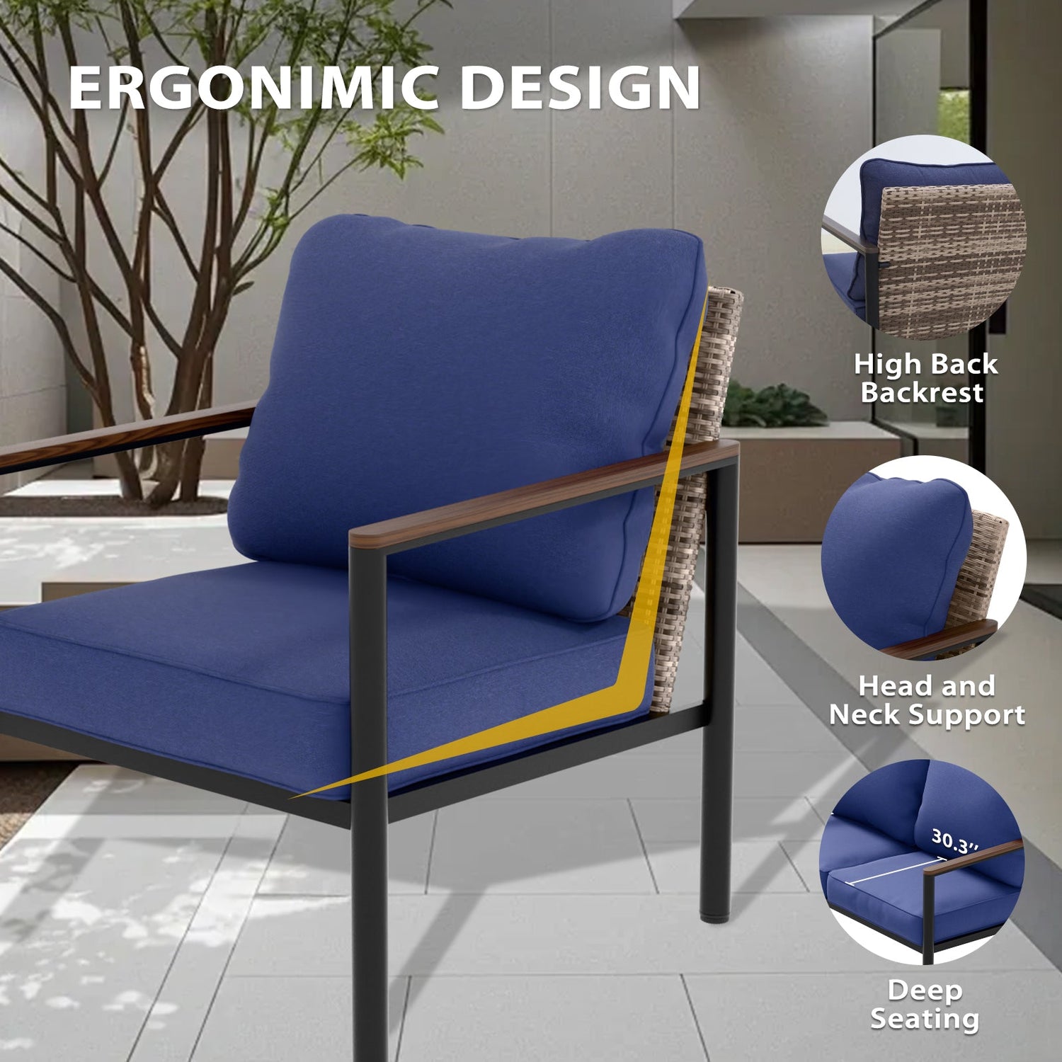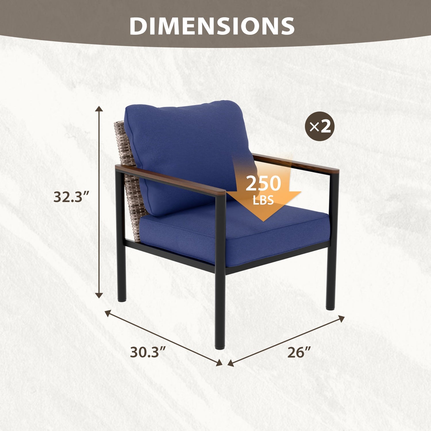 SPACIOUS & COMPACT DESIGN: With dimensions of 25.9" W x 30.3" D x 32.3" H, this chair provides ample lounging space without overwhelming your patio or living area, offering comfort and style in one compact size