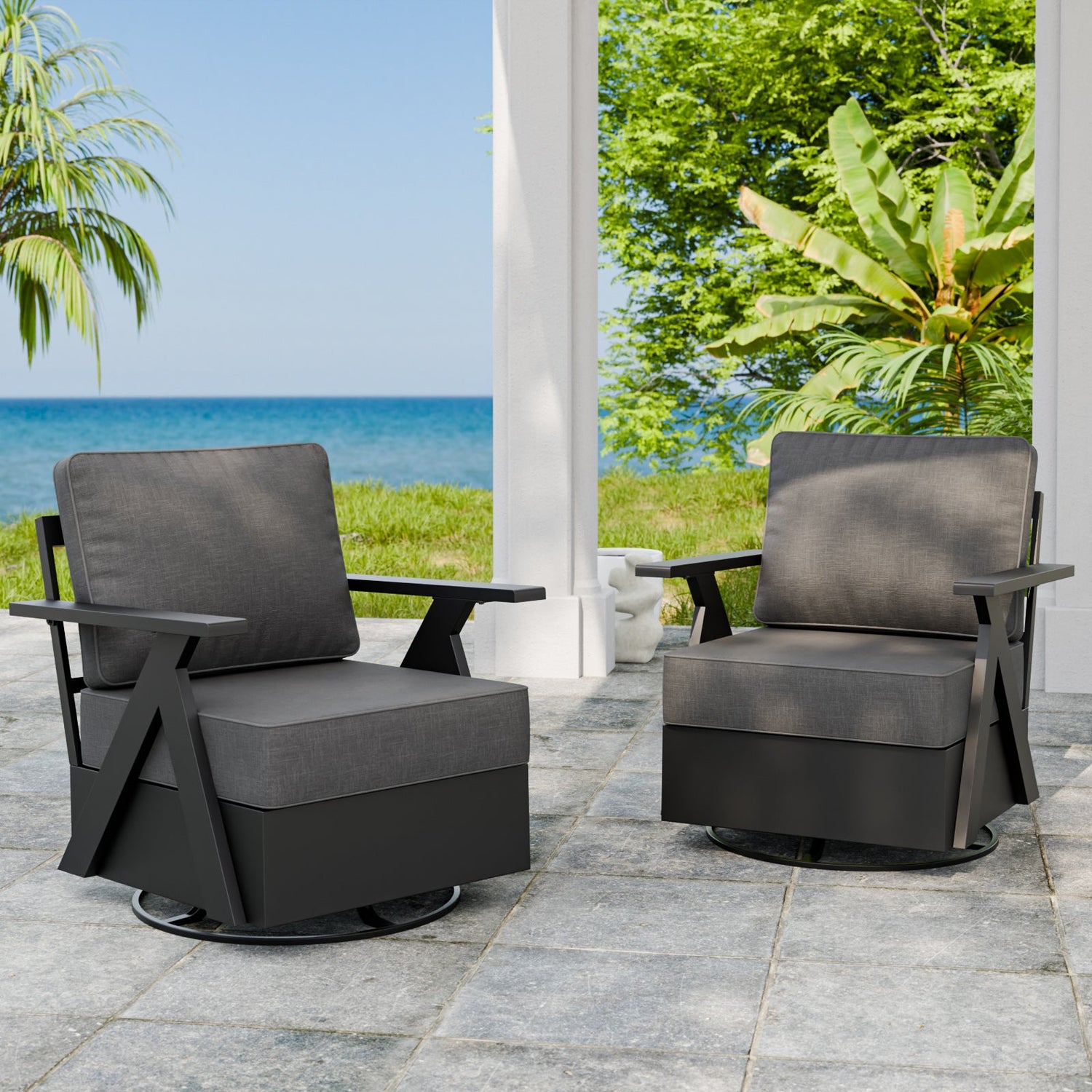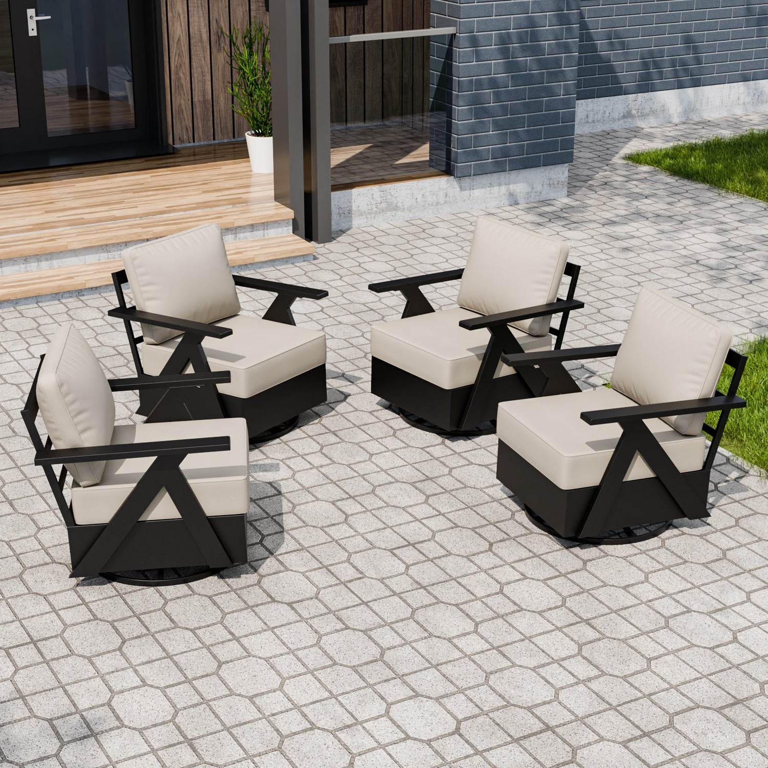 Urban Slate Modern Swivel Rocker Patio Chair Set of 2/4, Black/Beige