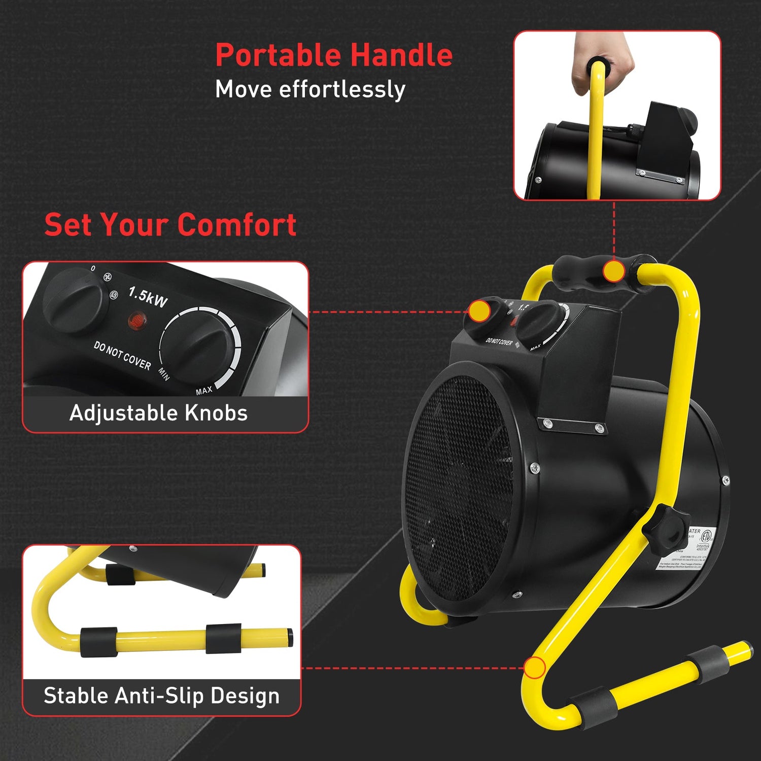 1500W Greenhouse Heater w/thermostat, 1/2 Pack, Black