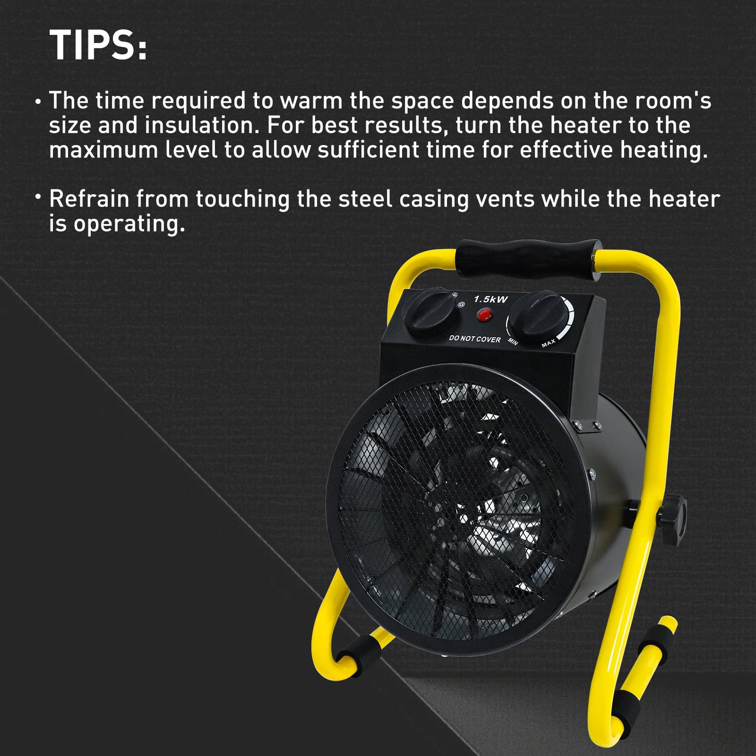RADIANT SPOT HEATING (1500W MAX): This greenhouse heater delivers focused radiant heat for small, enclosed spaces up to 120 sq ft under proper insulation conditions. Designed for supplemental spot heating, not intended for heating large rooms or open areas. A low CFM fan gently distributes warmth with minimal air movement and noise