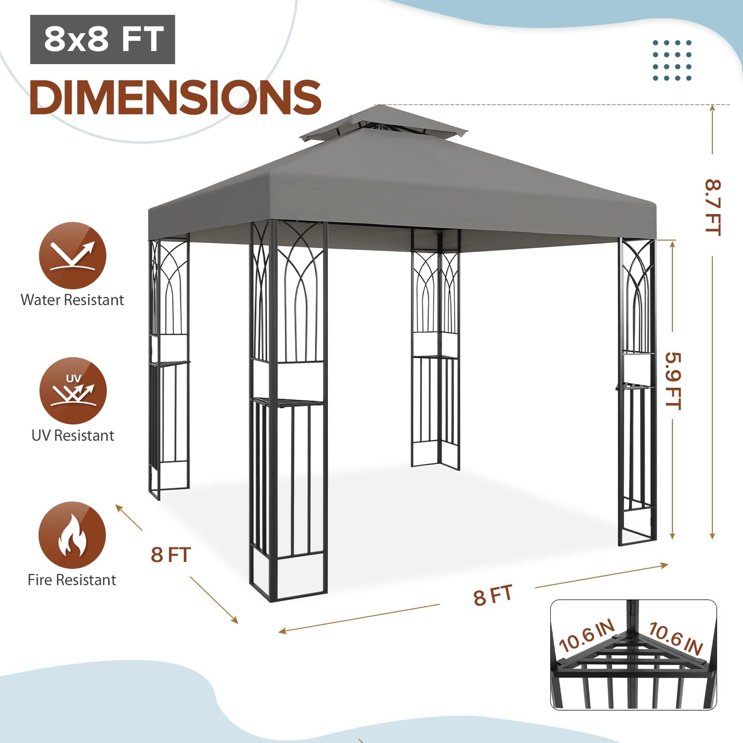 AMPLE SHADE AREA: This outdoor patio gazebo measures 8'L x 8'W x 8.7'H, providing 64 square feet of shade, enough for 4-6 people. This spacious gazebo is your ideal choice for any outdoor events, adding an elegant aesthetic to your backyard, patio, deck, lawn, or poolside.