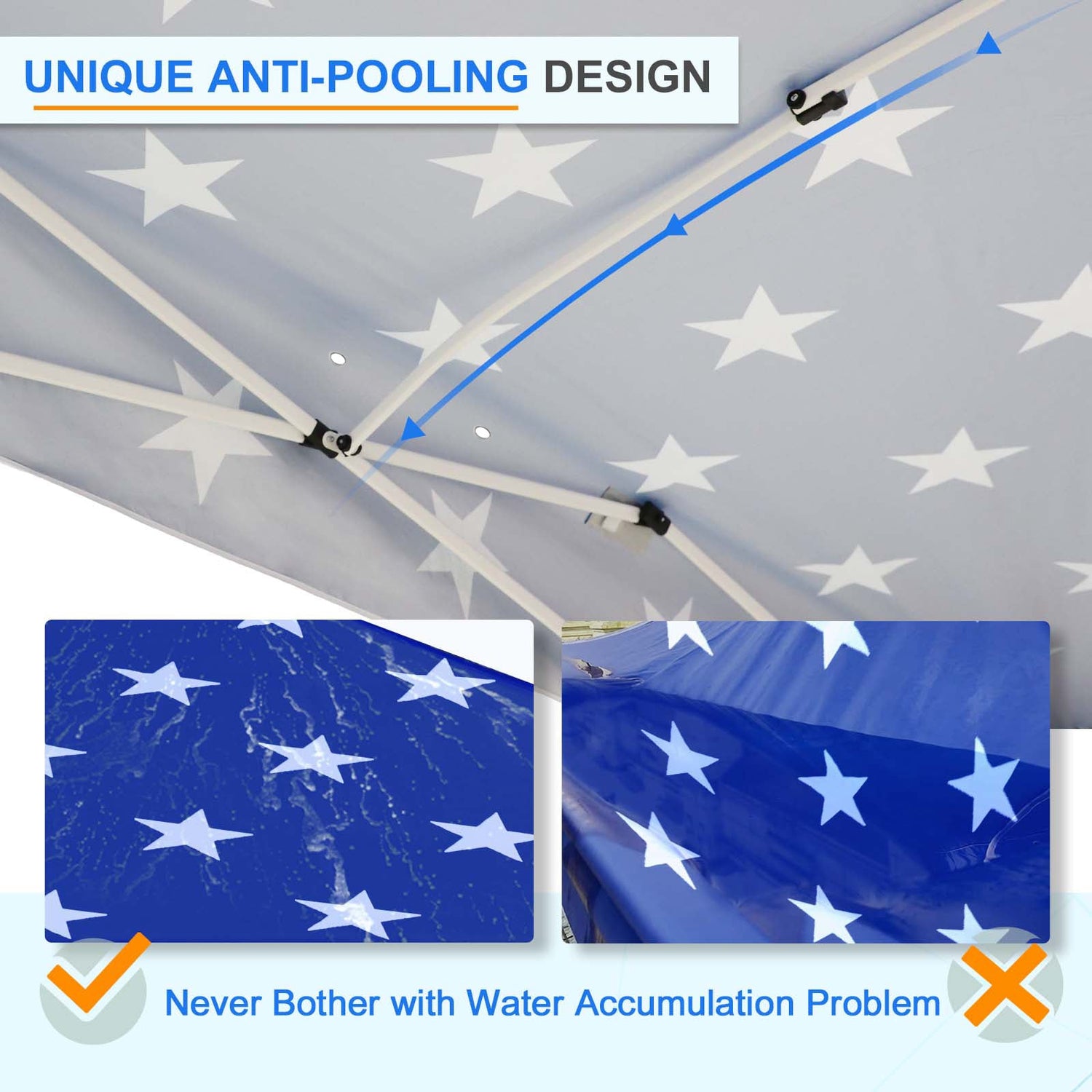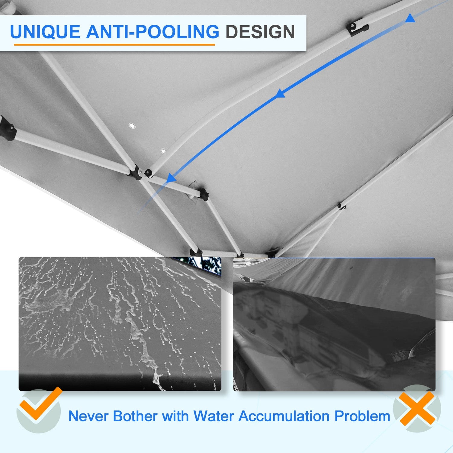 SUPERIOR QUALITY: The 144sqft 12x12 commercial quality pop up canopy top features heat sealed seams for improved waterproof performance. The unique 8-rib umbrella style roof makes the steel frame much sturdier and eliminates water pooling.