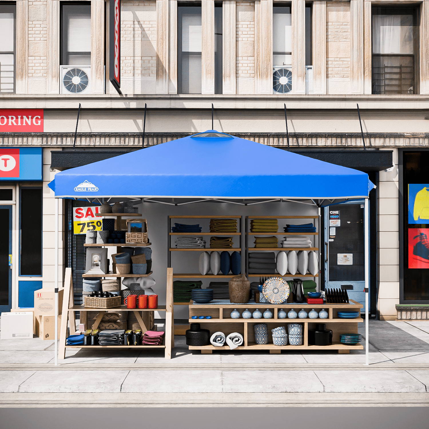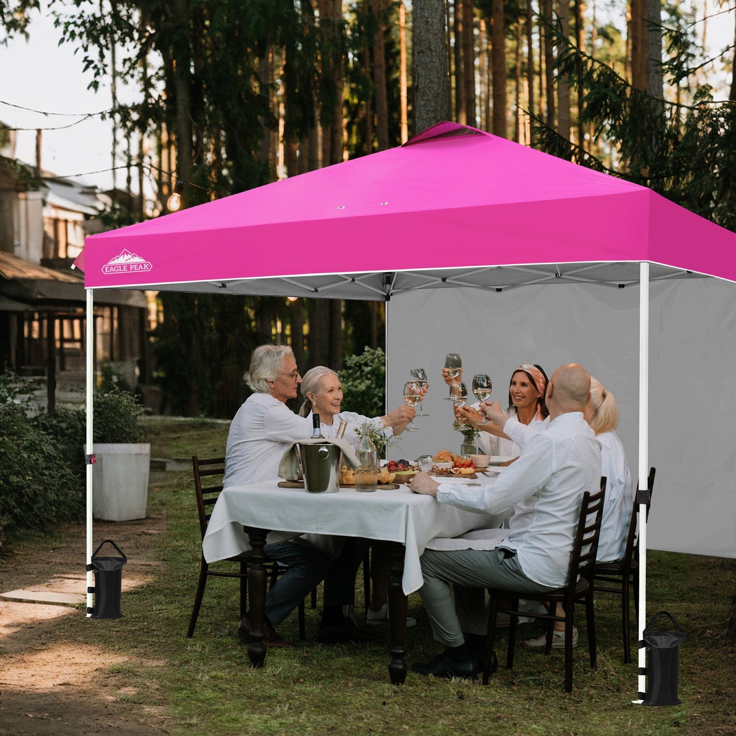 EASY SETUP: This easy setup pop up canopy tent features the Peak Push system, a patented canopy center lock. The portable canopy requires no tools and easily opens and closes from the center in seconds. Its unique canopy tent center lock enables a quick, one person setup, letting you maximize outdoor time with minimal effort.