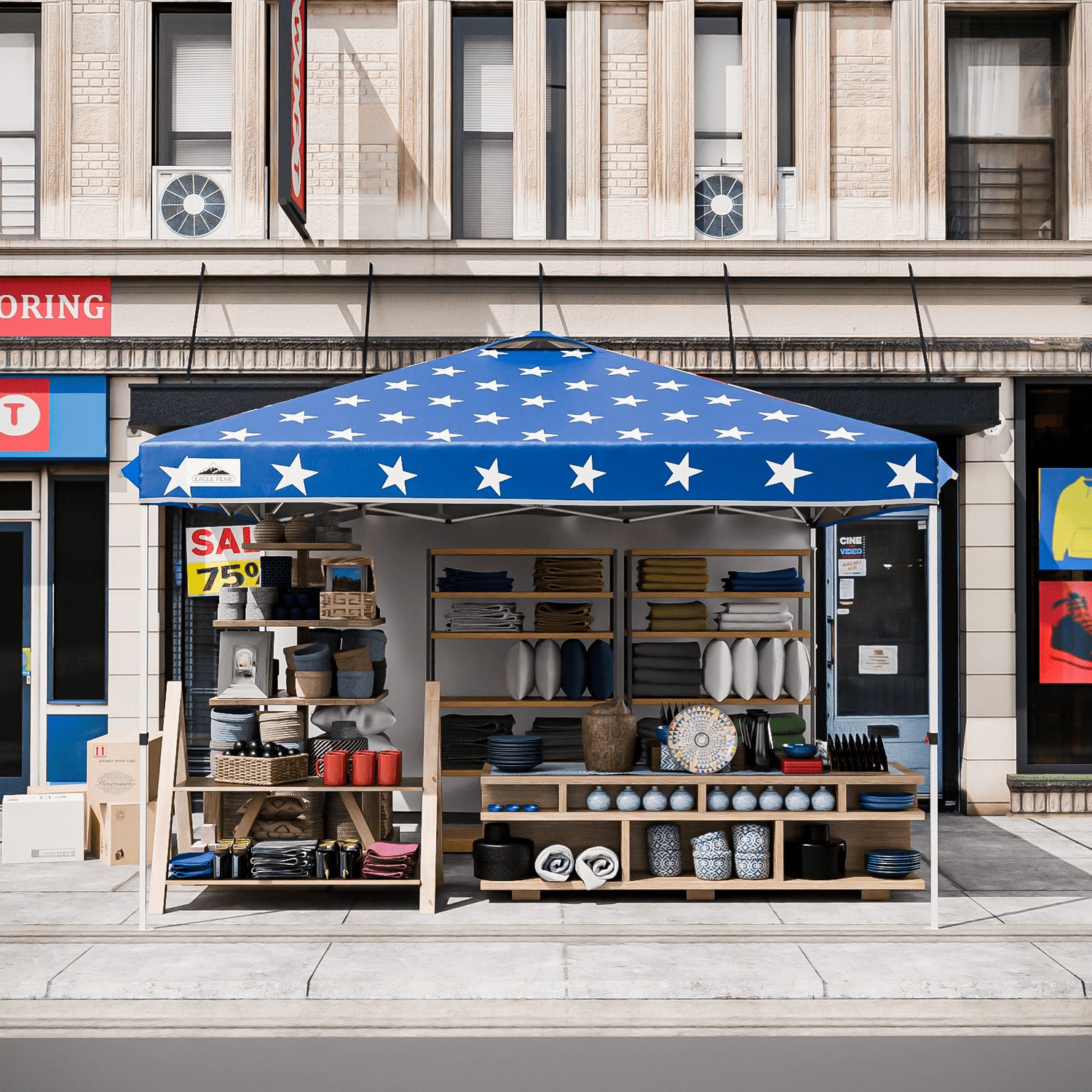 REMOVABLE SIDEWALL: This marketplace canopy comes with one detachable side wall. The wall is easily attached, or removed, using the secure Velcro straps.
