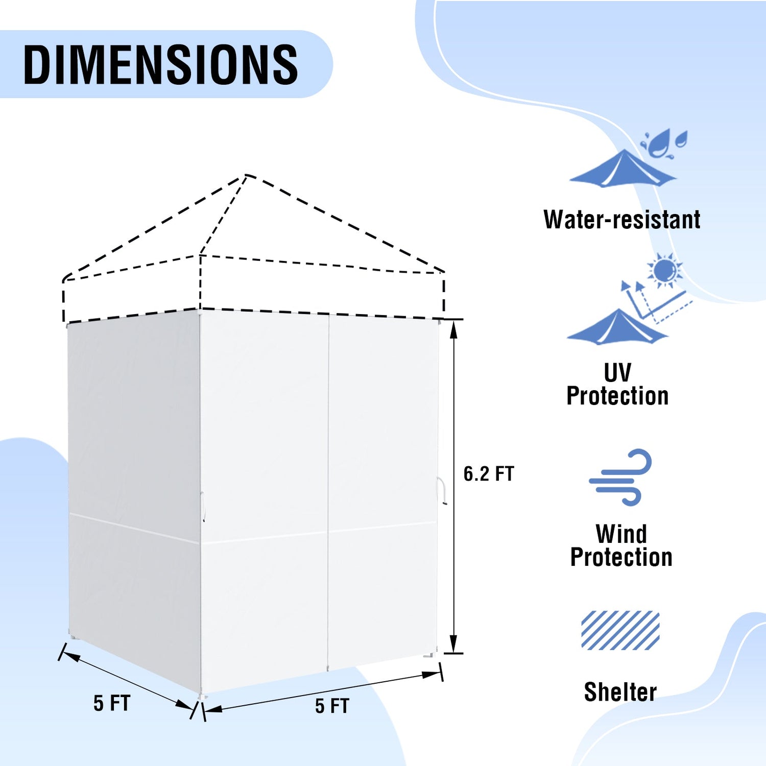 4-Piece Sunwall/Sidewalls for 5x5 ft Steel Custom Canopy Only, Includes 3 Sidewalls and 1 Entry Wall, Pack of 4, White