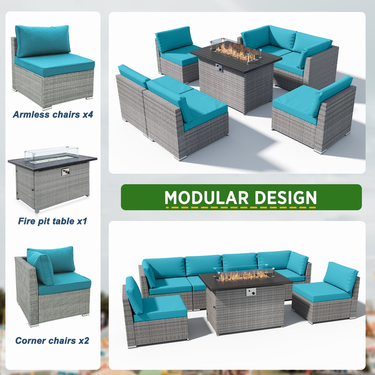 - MODULAR DESIGN: The 7-piece wicker set can be assembled as shown or the pieces can be configured as desired. Perfectly sized for your balcony, patio, or deck.