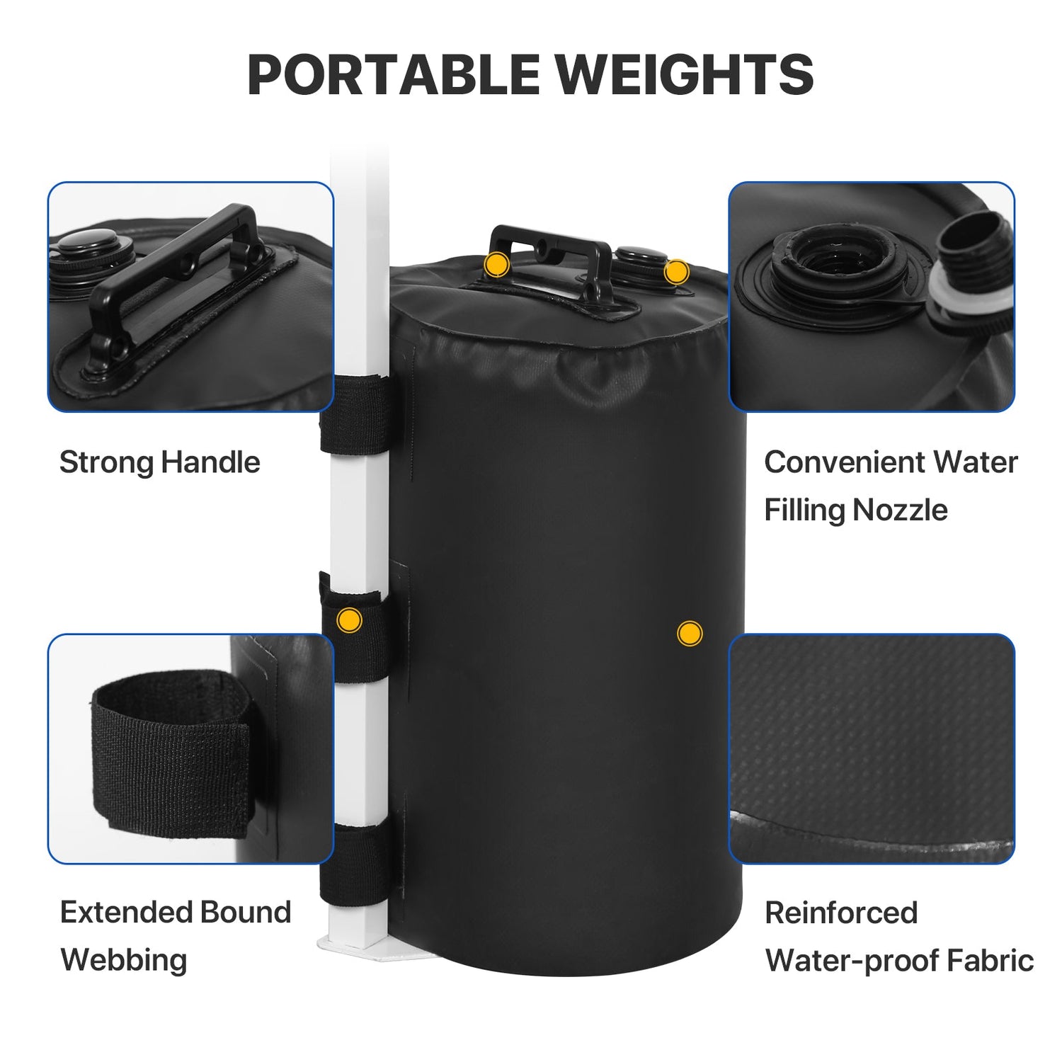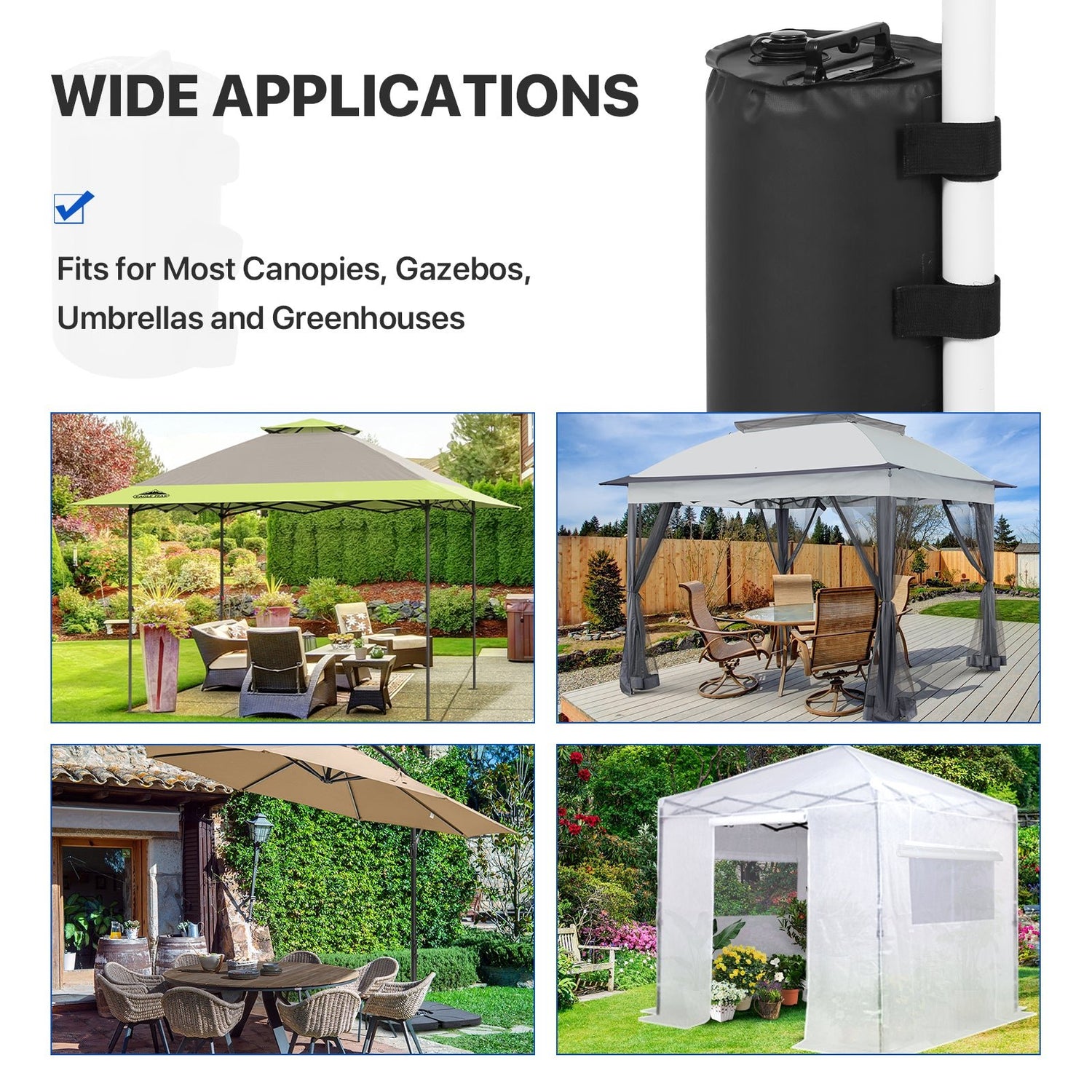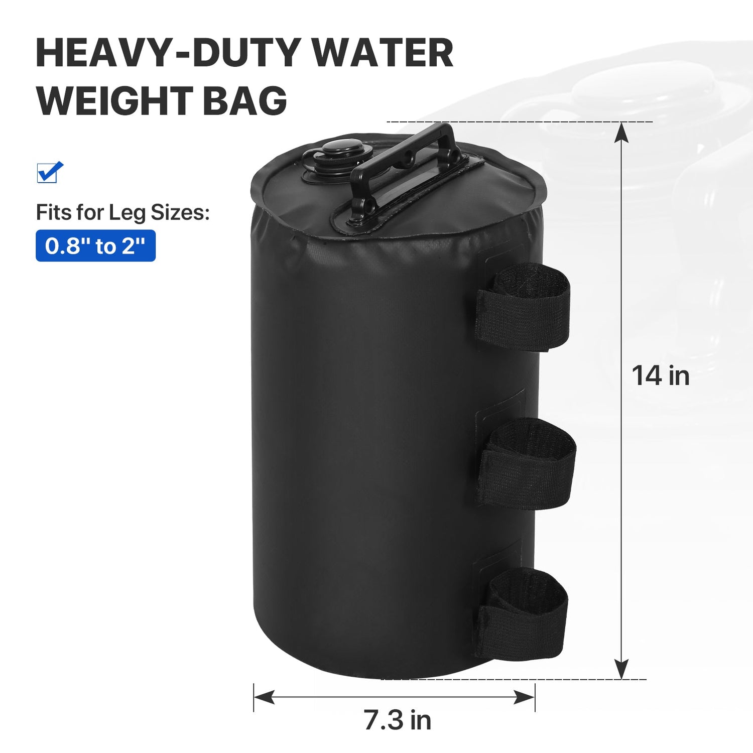 WIDE USE: Comes with a set of 4 weight bags, perfect for outdoor canopies, camping tents, gazebos, sun shelters, greenhouses, and carports. Fit for leg sizes ranging from 0.8'' to 2''.