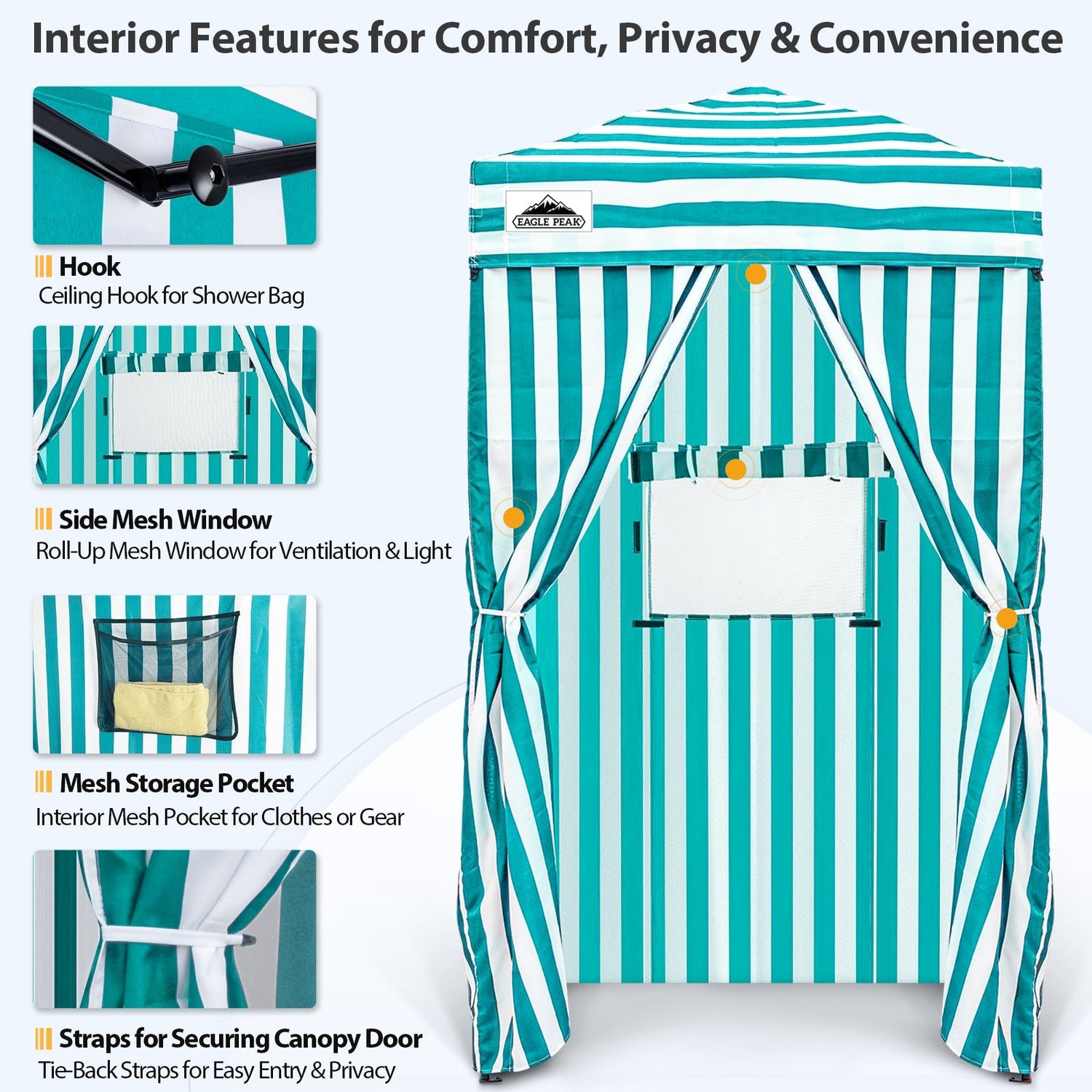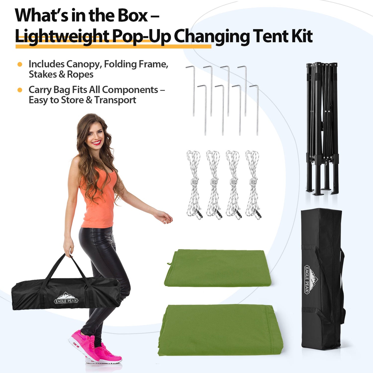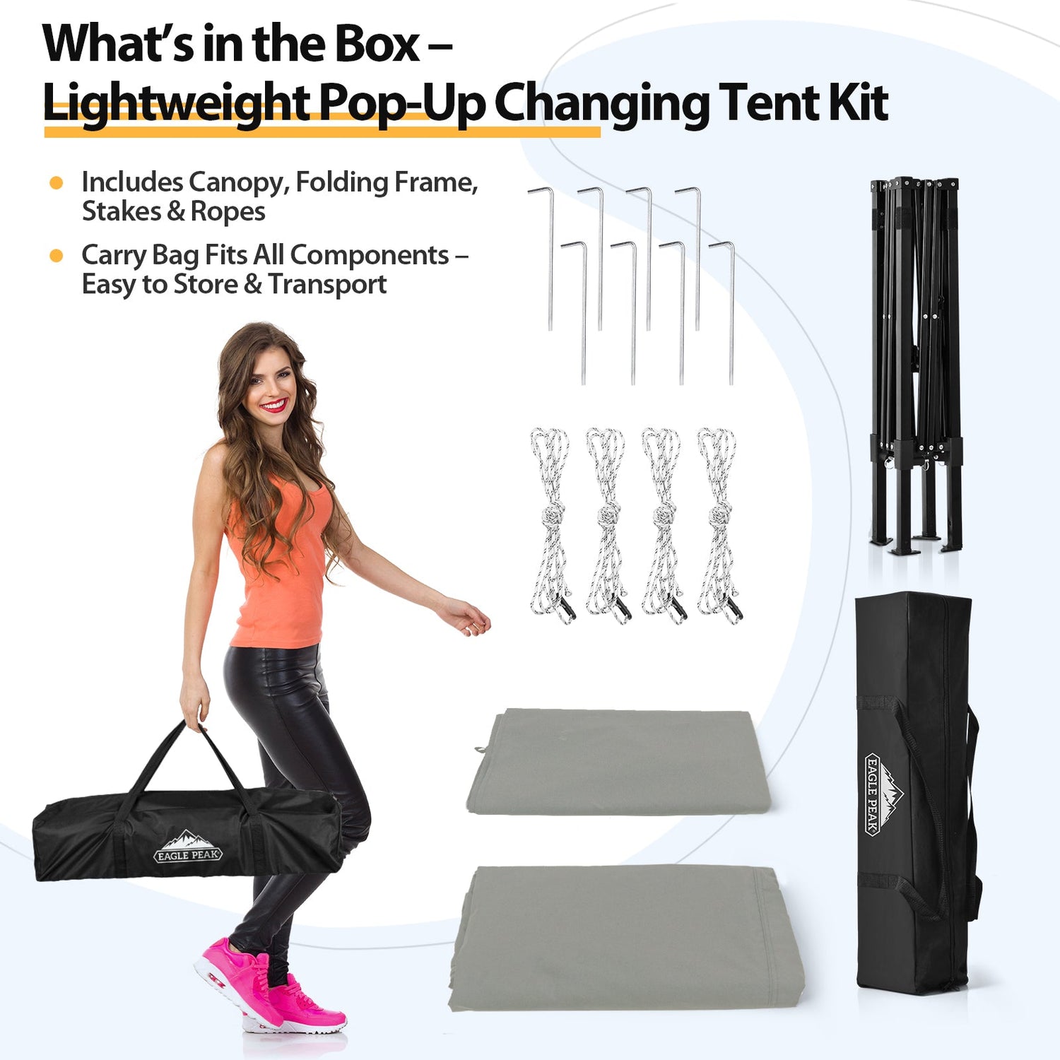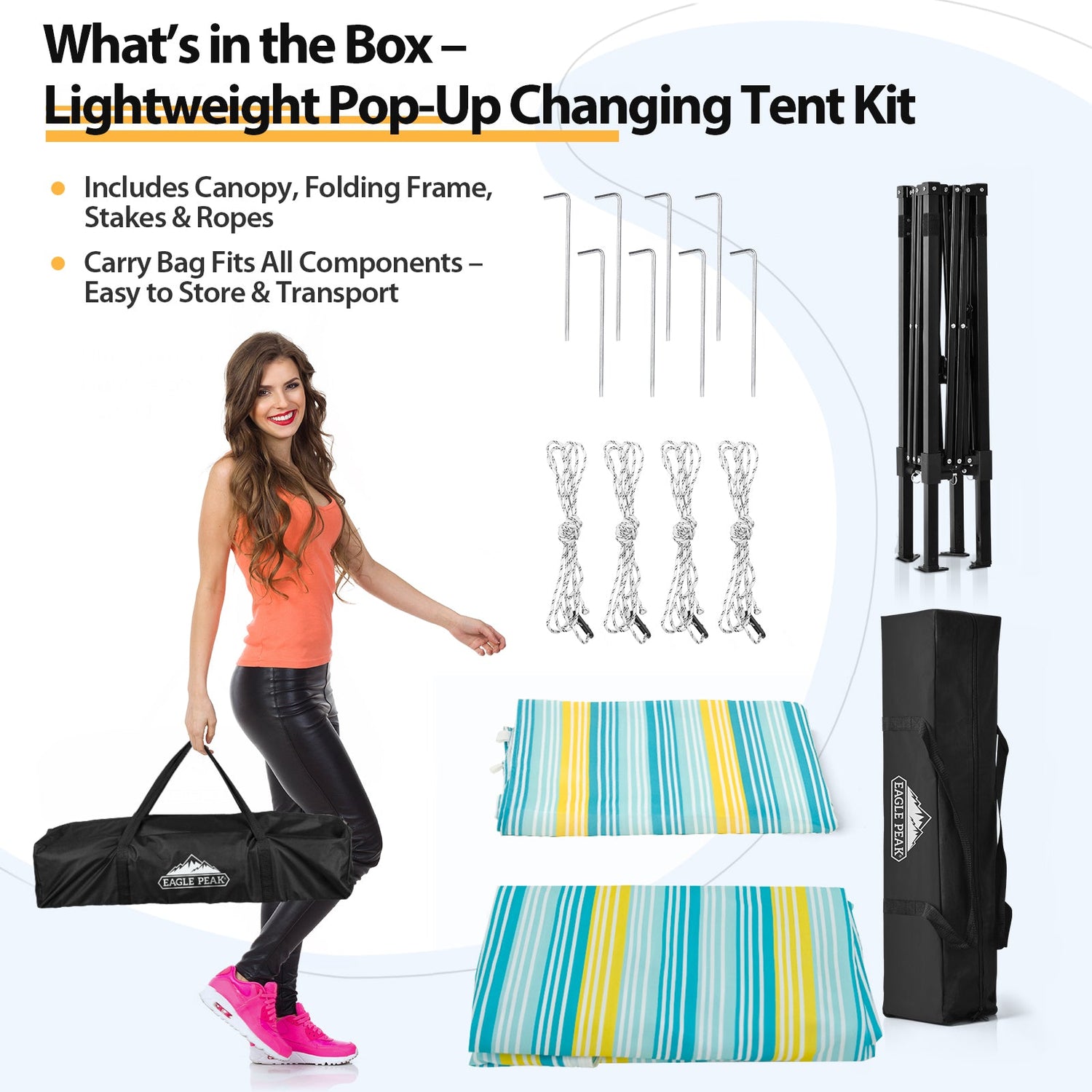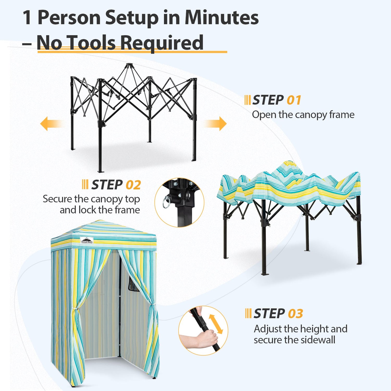 LIGHTWEIGHT & ULTRA COMPACT: Changing Dressing Room has an ultra-compact, 3-part adjustable steel leg extension system. The Cabana is easy to store and carry, instantly folding down to just under 3 feet tall, 6.30x6.30x32.28in, 16x16x82 cm.