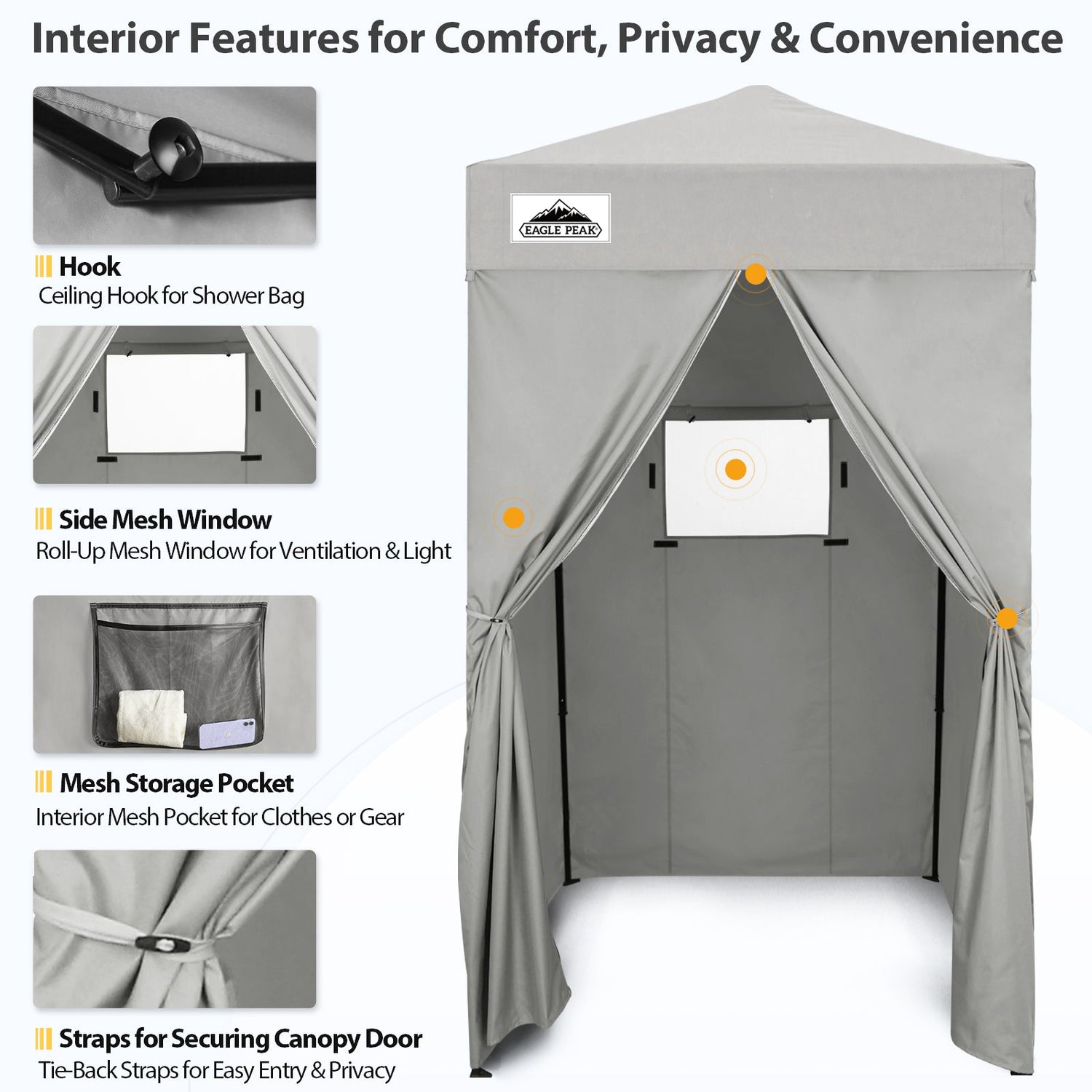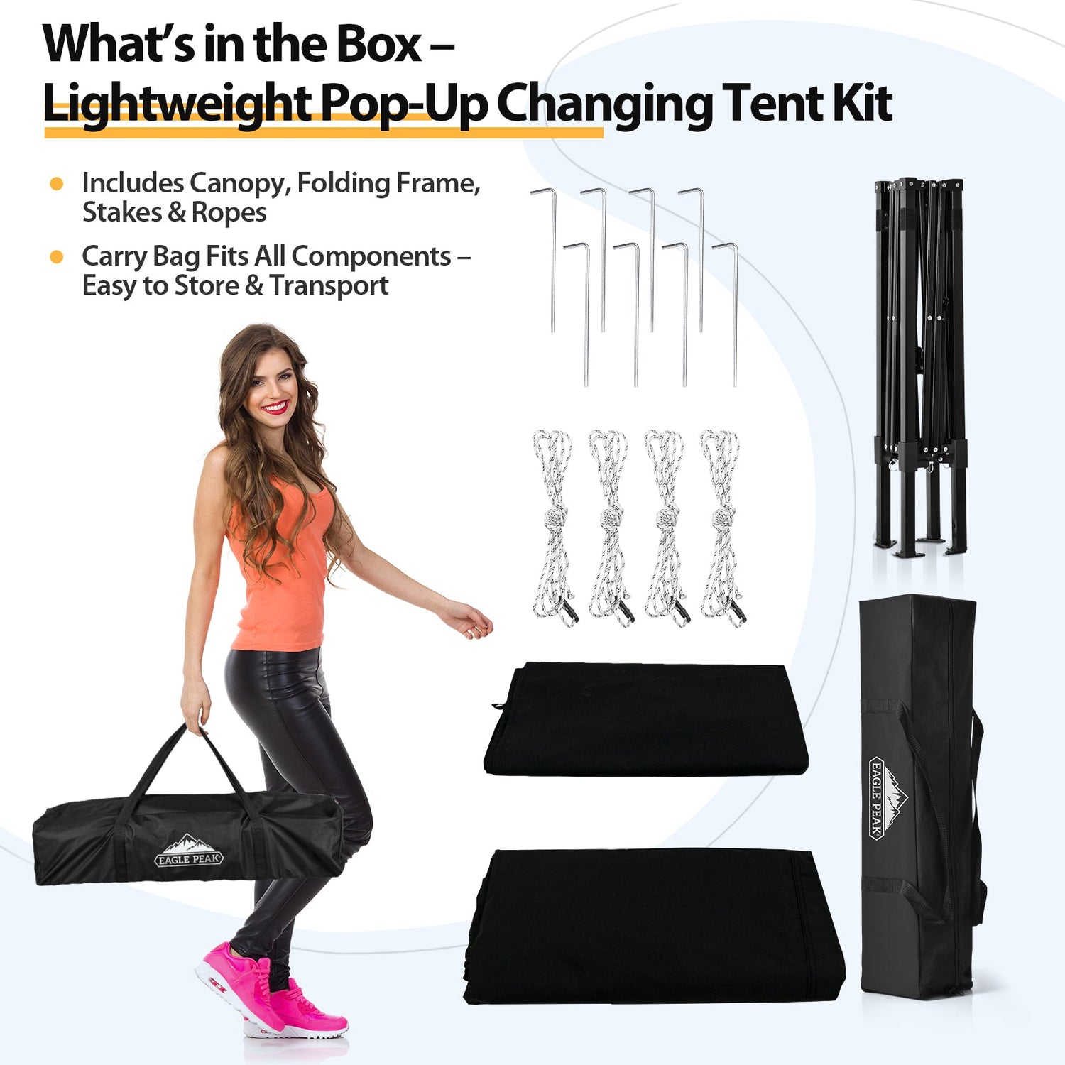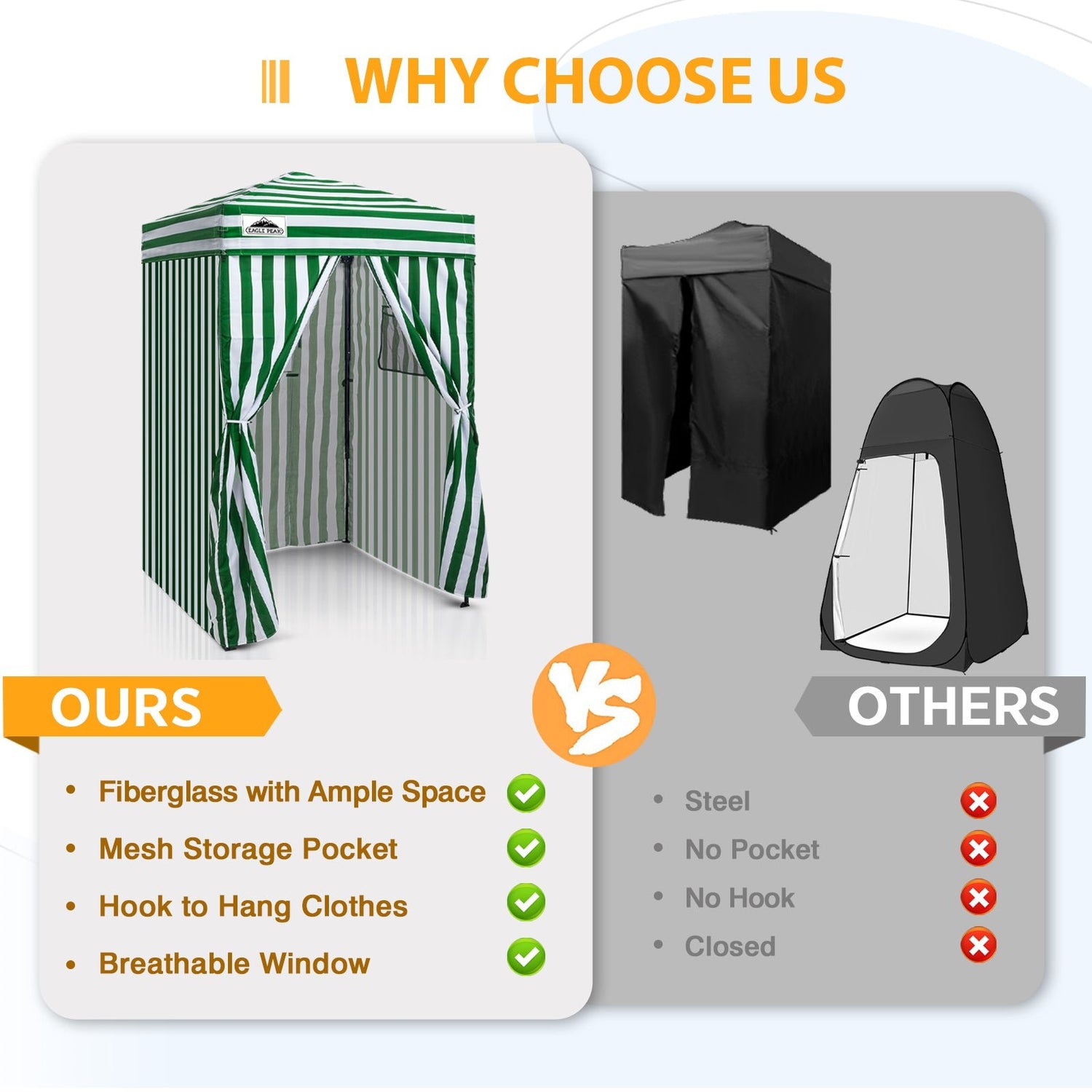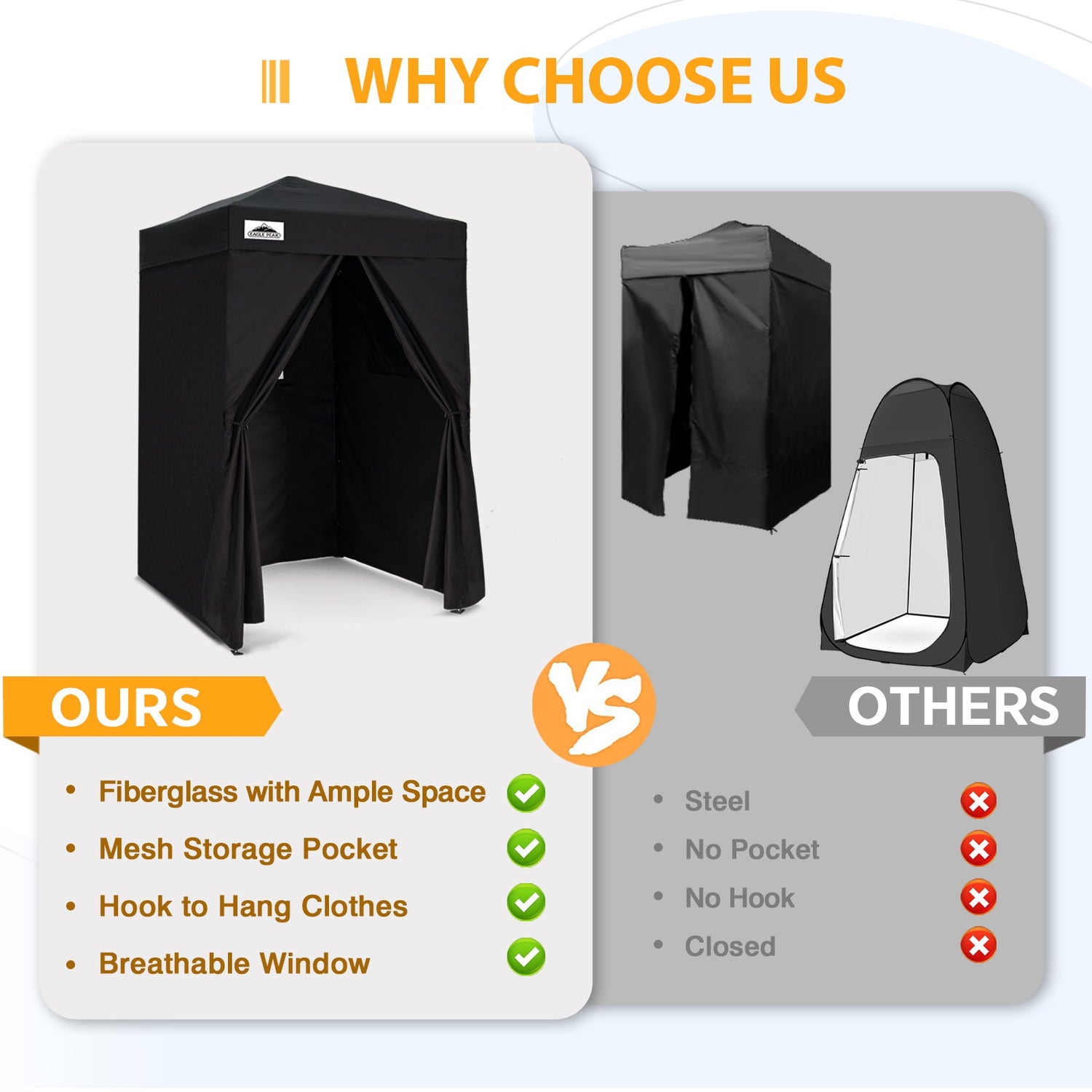 INSTANT PRIVACY CHANGING ROOM: 4x4 changing tent for one or two people. Perfect as a changing room or sun cabana for outdoor activities: fashion show, photoshoot, camping, backyards, pool party or a showering tent, portable toilet shelter.