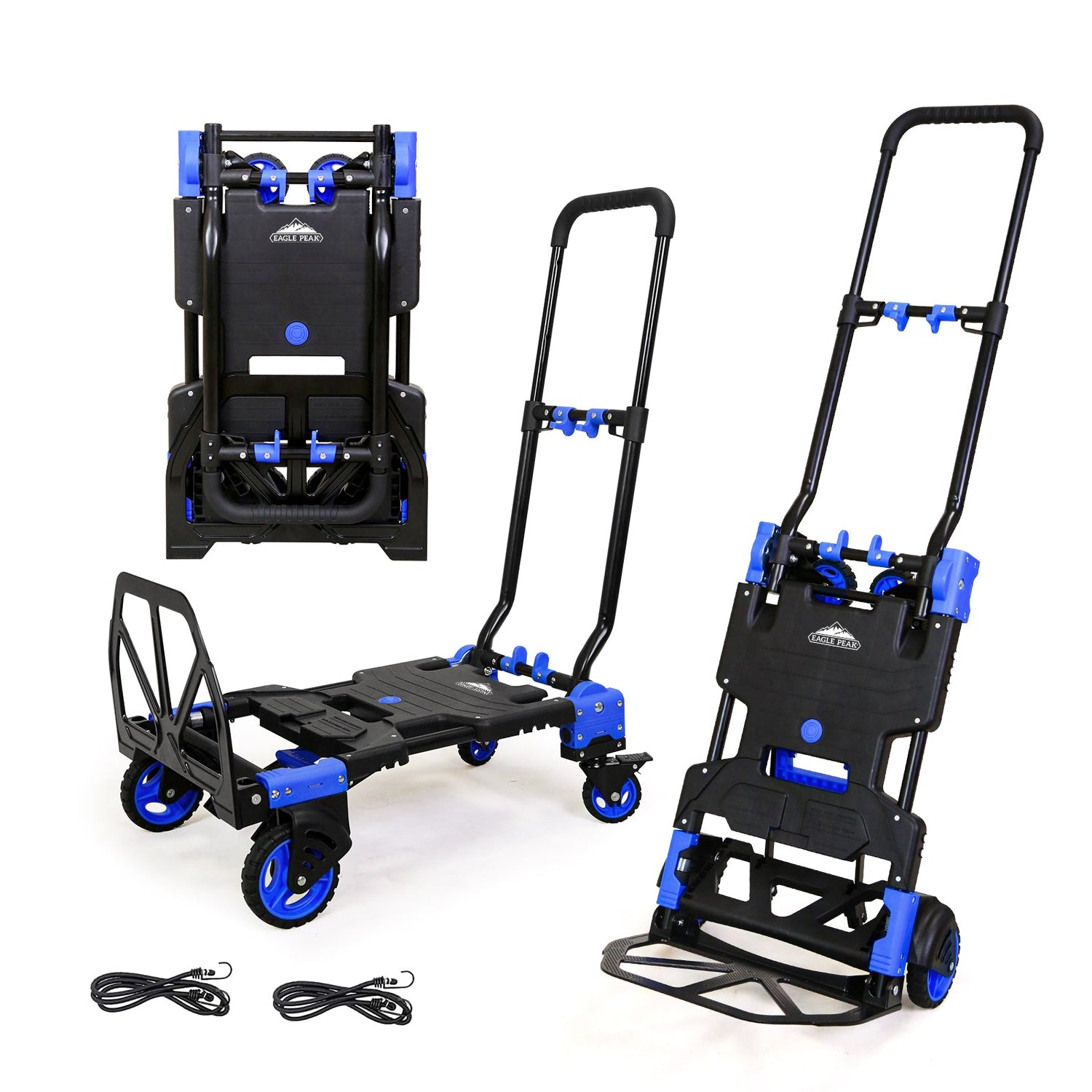 EAGLE PEAK Folding Dolly Cart 330 lb Capacity with Bungee Cords, Multi-Position for Luggage/Travel/Move/Transportation