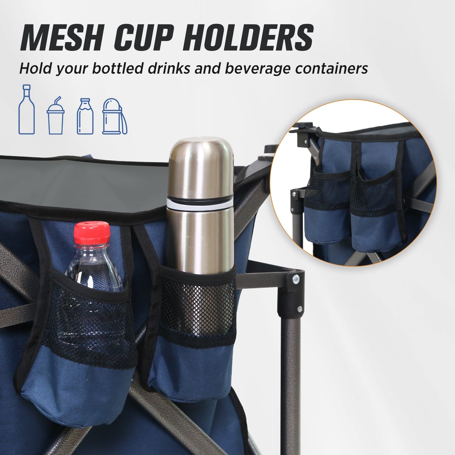 Heavy-Duty Collapsible Folding Utility Wagon, All Terrain Garden Hand Cart with Large Size Pocket and Cup Holders for Sports, Beach, Camping, Garden, and Grocery, Black / Dark Blue