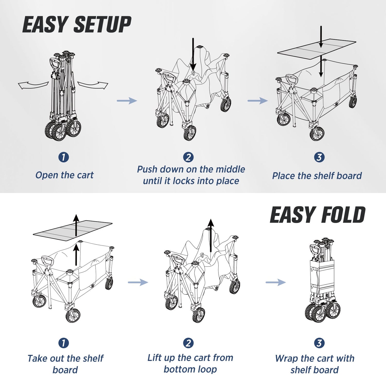 Heavy-duty Foldable Cart: The EAGLE PEAK collapsible utility wagon is constructed with sturdy steel which can support up to 330lbs. The internal unfolded size measures: 2.3'' L x 15.7'' W x 14.9'' H, offering plenty of storage space.