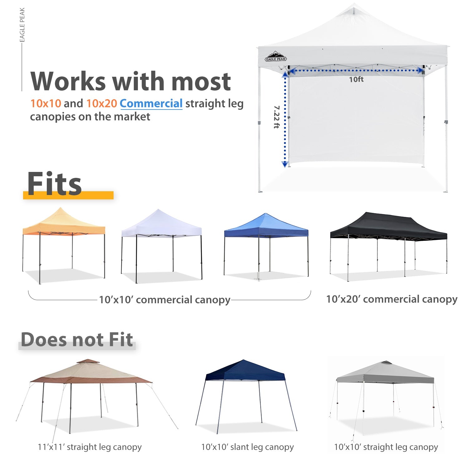- QUALITY FIT: Designed for the Eagle Peak 10'x10' Commercial Pro canopy. An instant pop-up canopy or gazebo requires one (1) set for each side of a 10x10 instant pop-up canopy or gazebo.