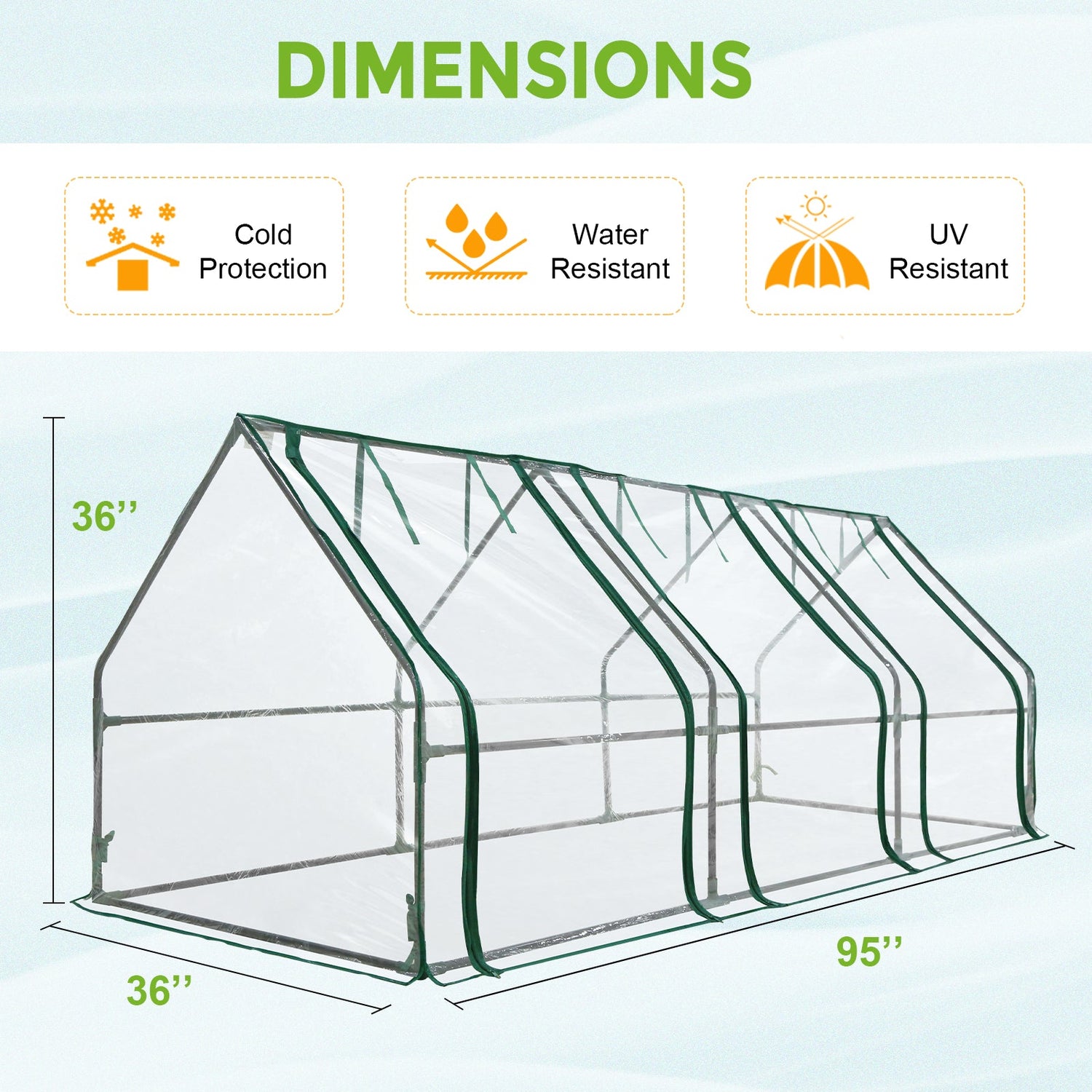 SPACE TO WORK: This greenhouse measures 95" x 36" x 36". The three sections provide plenty of room for all your blooming flowers, sprouting plants and fresh vegetables.