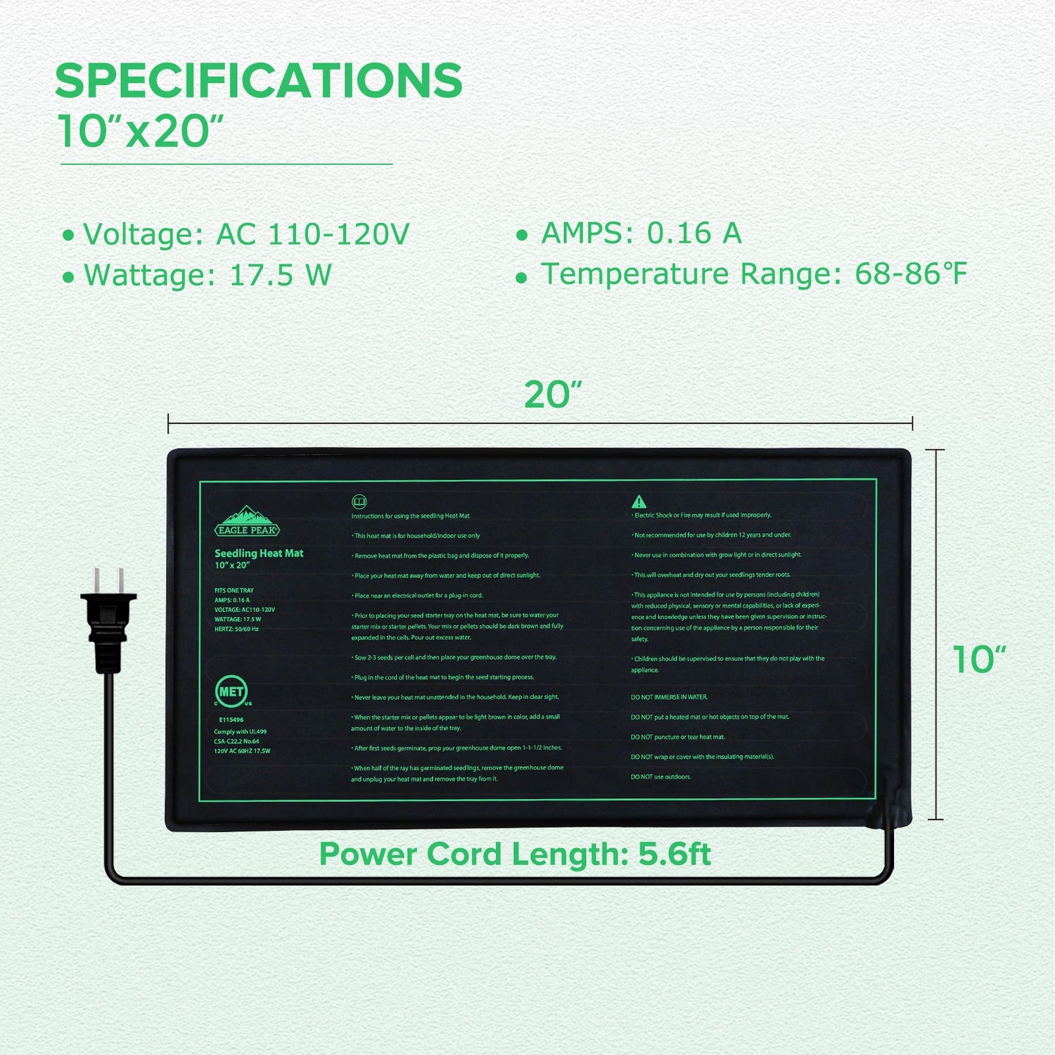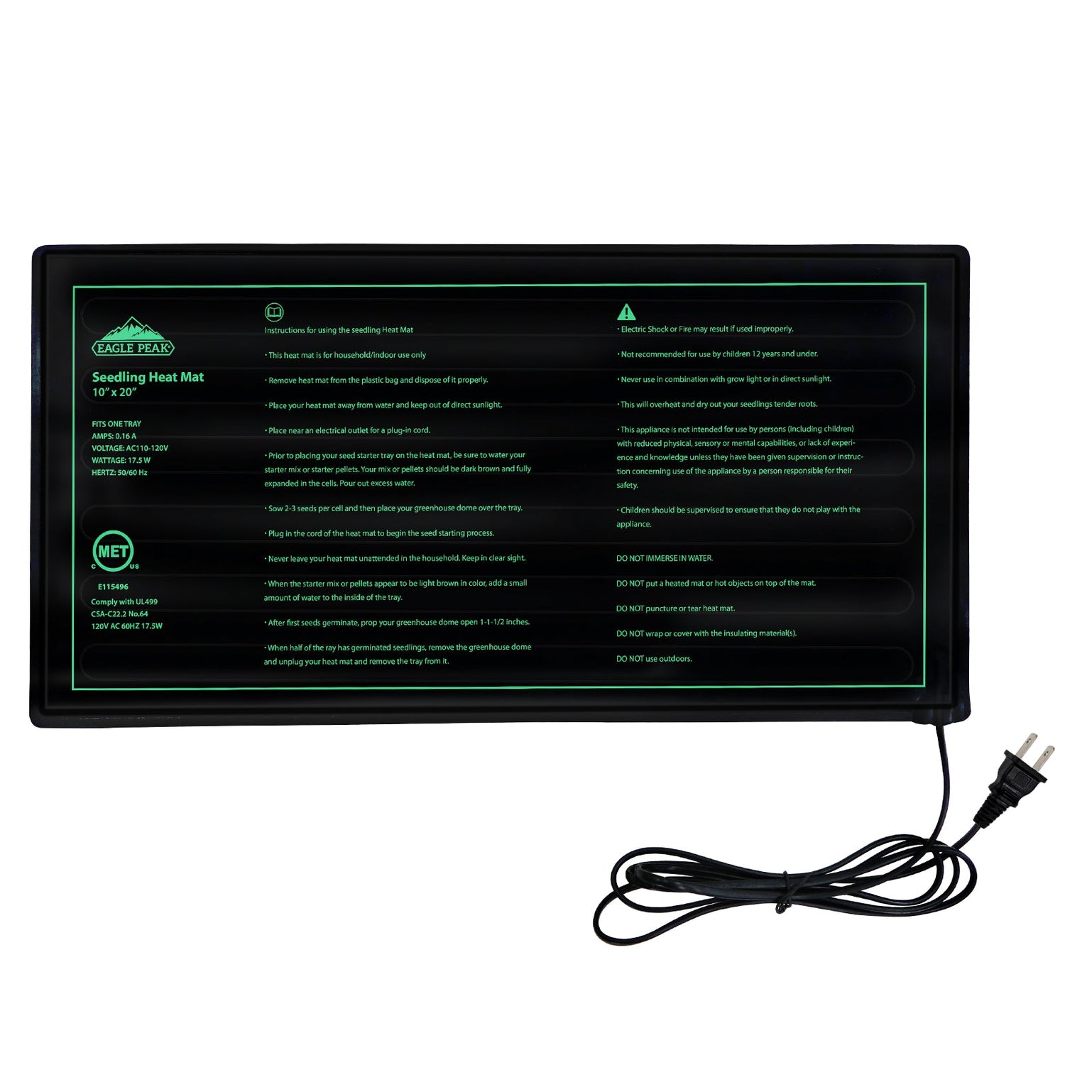 EAGLE PEAK Seedling Heat Mat 10”x20”, UL & MET-Certified Heating Pad for Seed Starting, Waterproof Heating Mat for Seed Germination, Warm Hydroponic Gardening Heating Pad, Contains (1) Warming Mat
