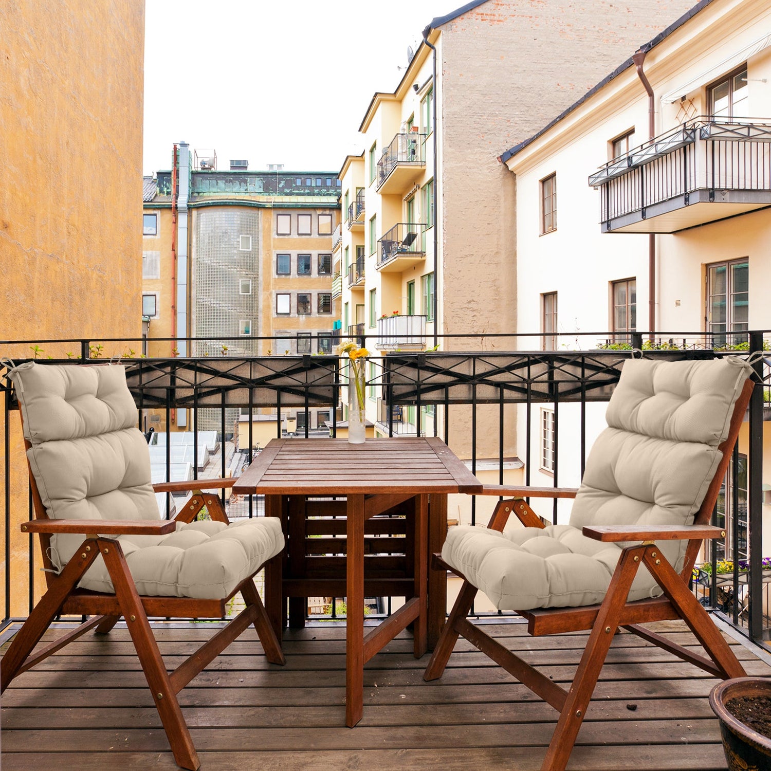Tufted Outdoor/Indoor High Back Patio Chair Cushion, Set of 2, 46'' x 22'' - Beige is backordered and will ship as soon as it is back in stock.