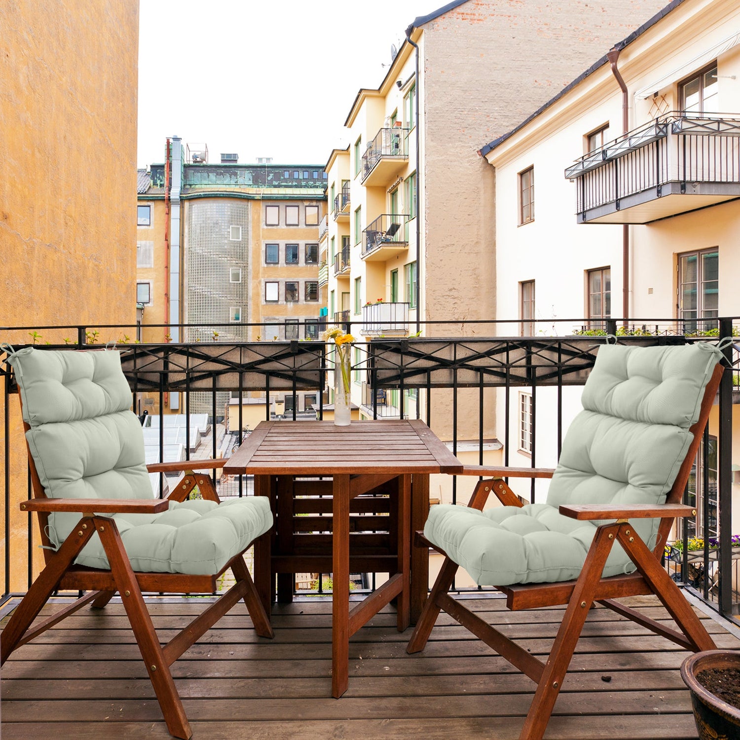 QUALITY FABRIC: The EAGLE PEAK outdoor tufted high back patio chair cushions (set of 2) are made of superior water-repellent polyester fabric, perfect for your wicker seat, dining chairs, bench, porch swing or porch rockers. This is an ideal cushion for both indoor and outdoor use.