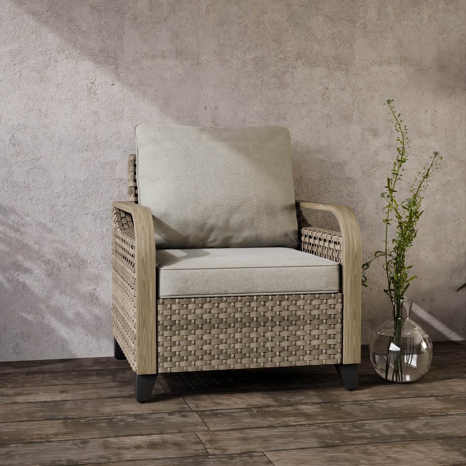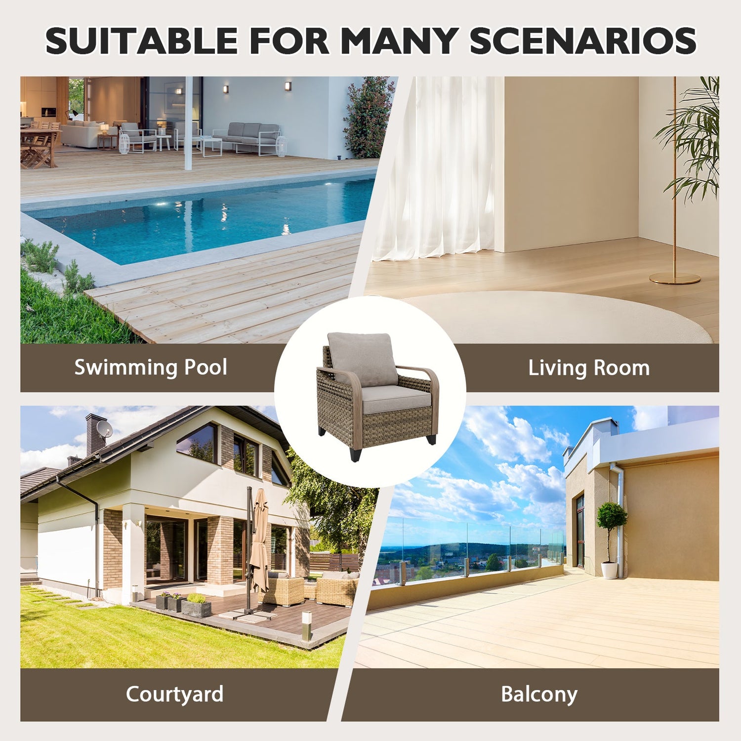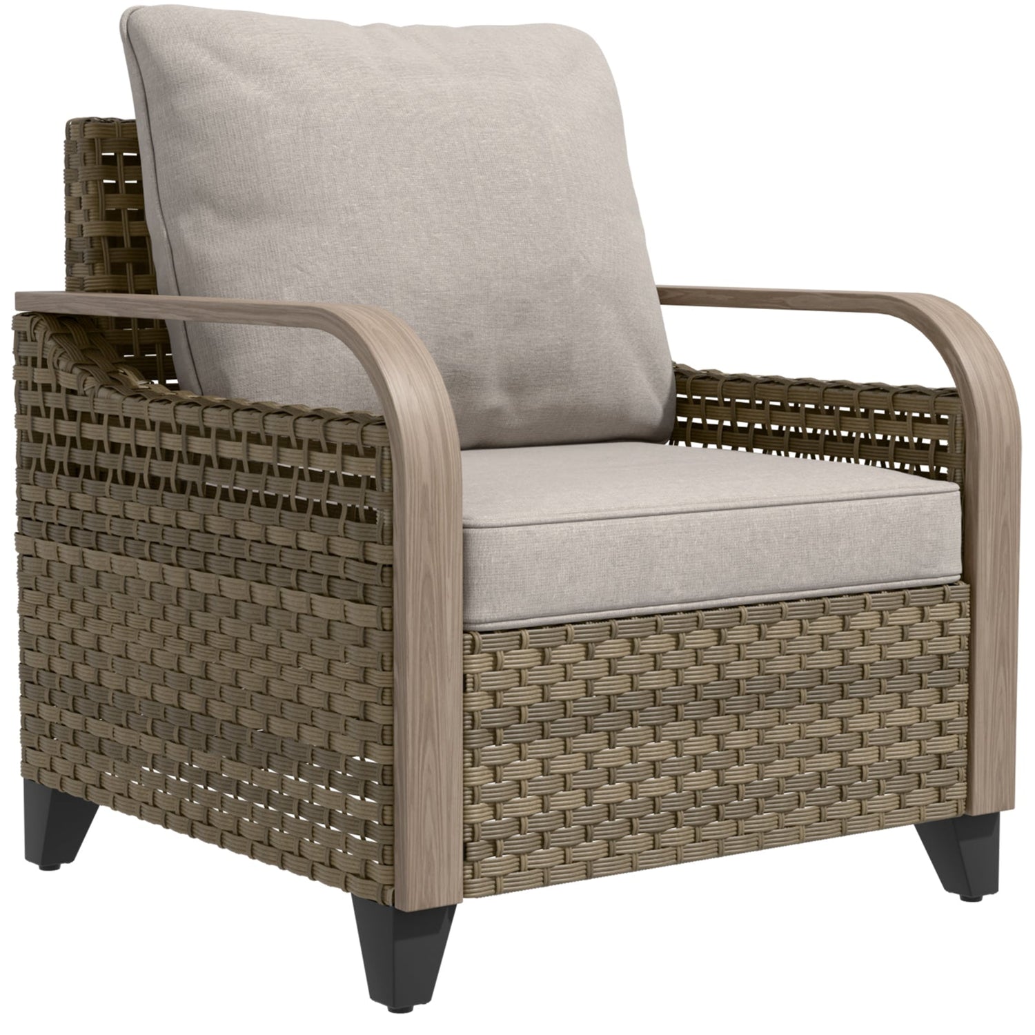 Modern Wicker Outdoor Chair with Cushions, Brown/Gray