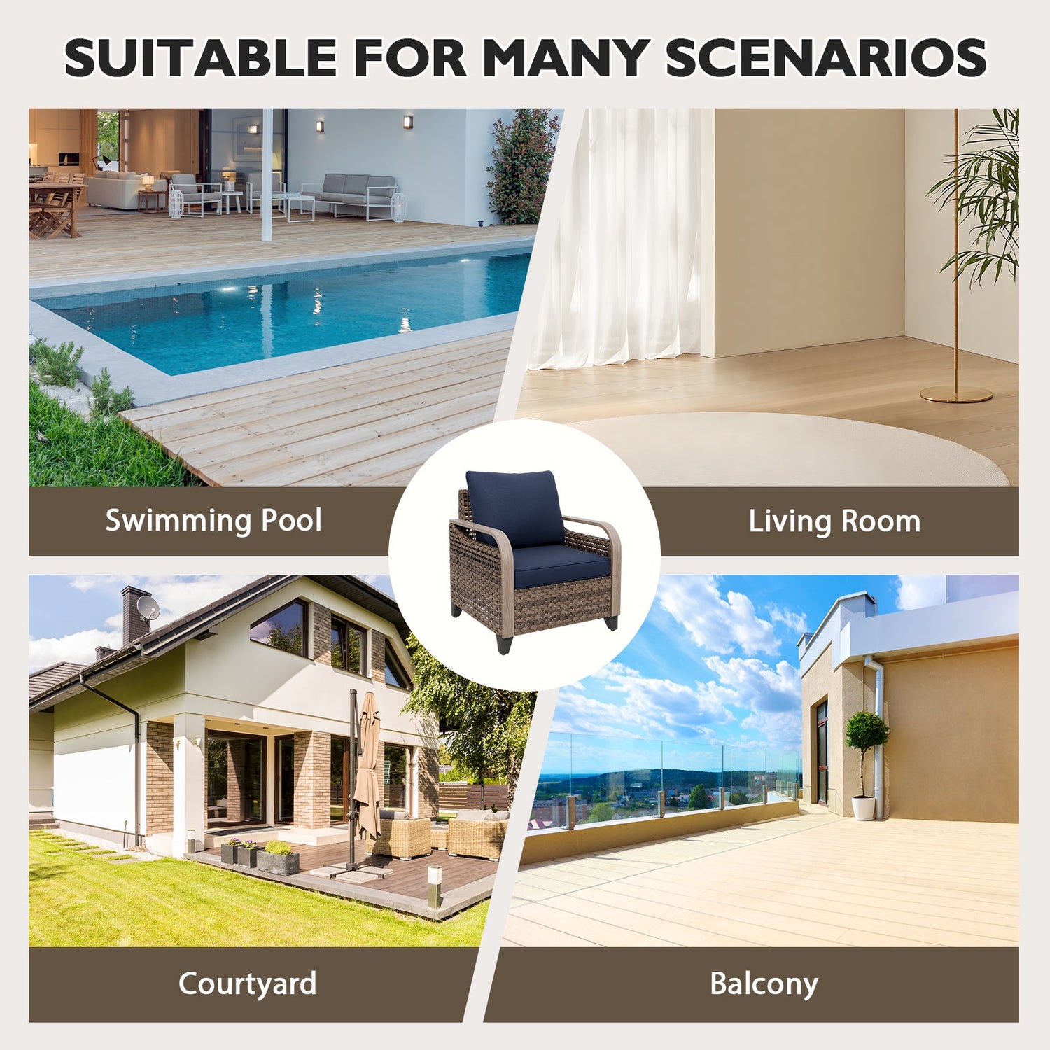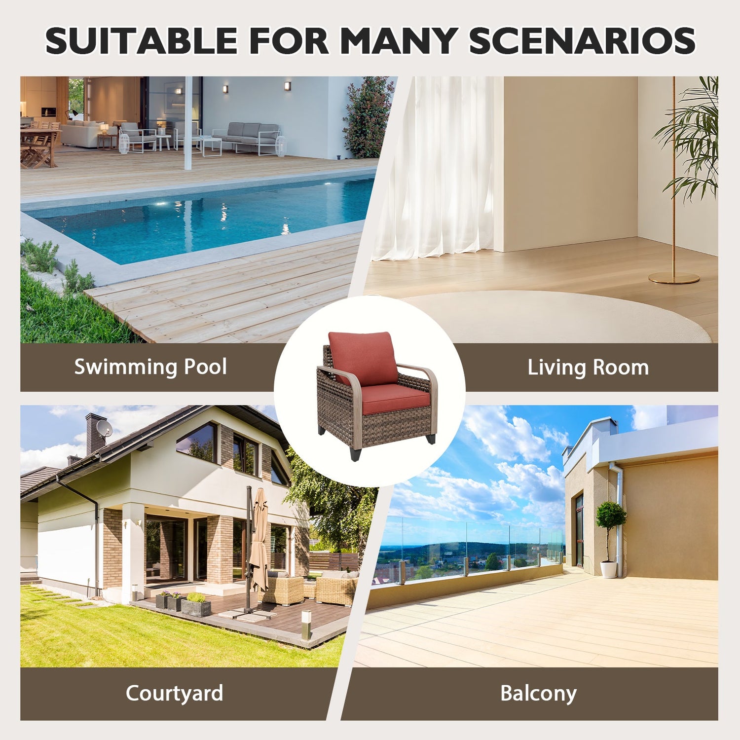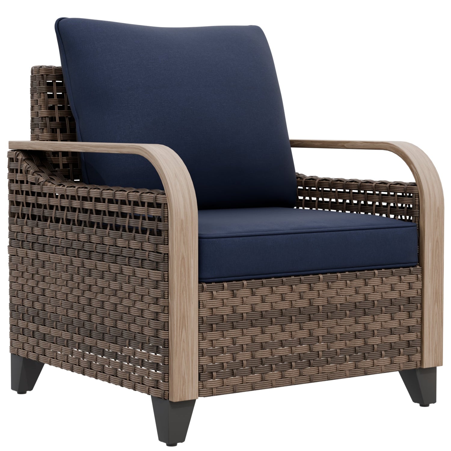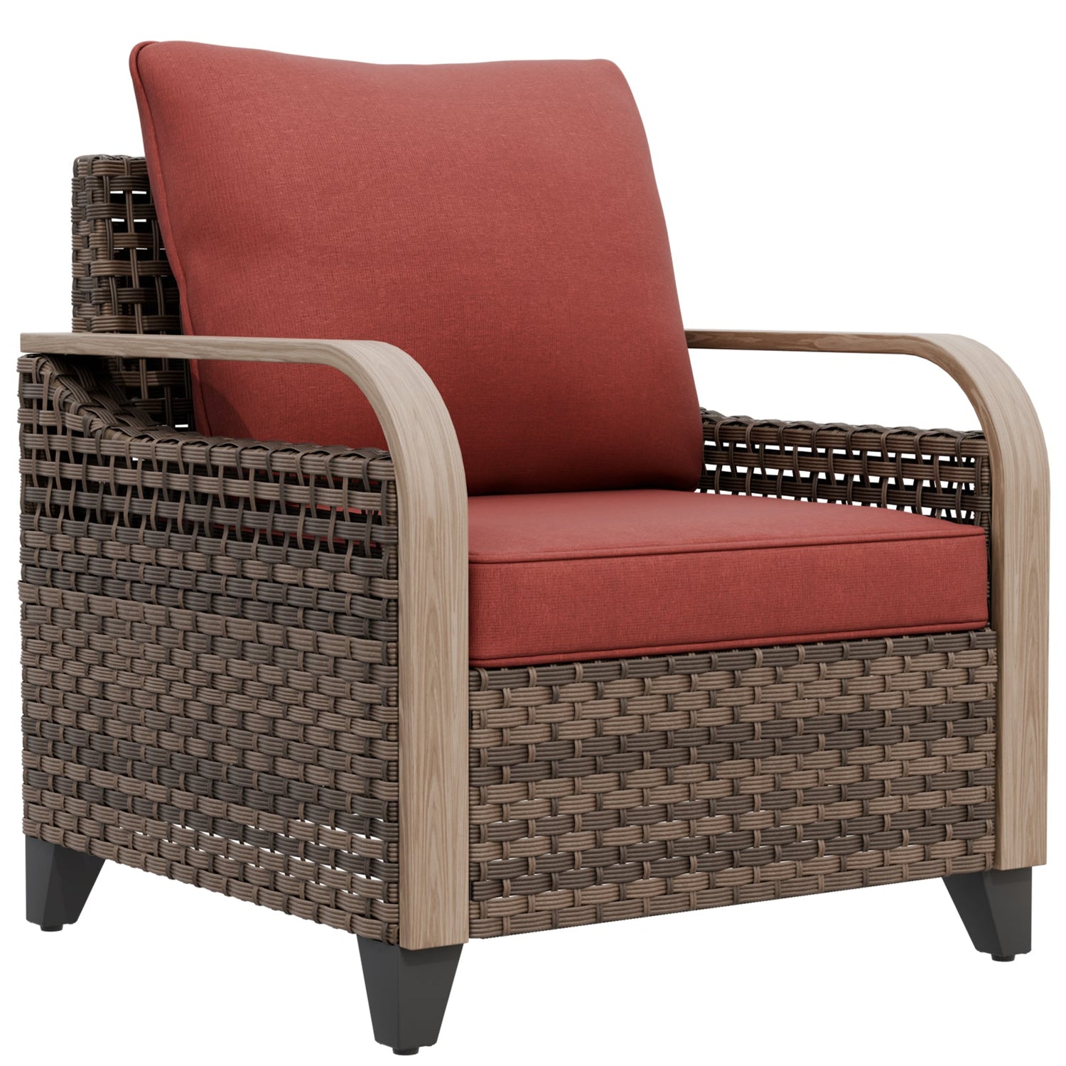 Modern Wicker Outdoor Chair with Cushions, Brown/Gray