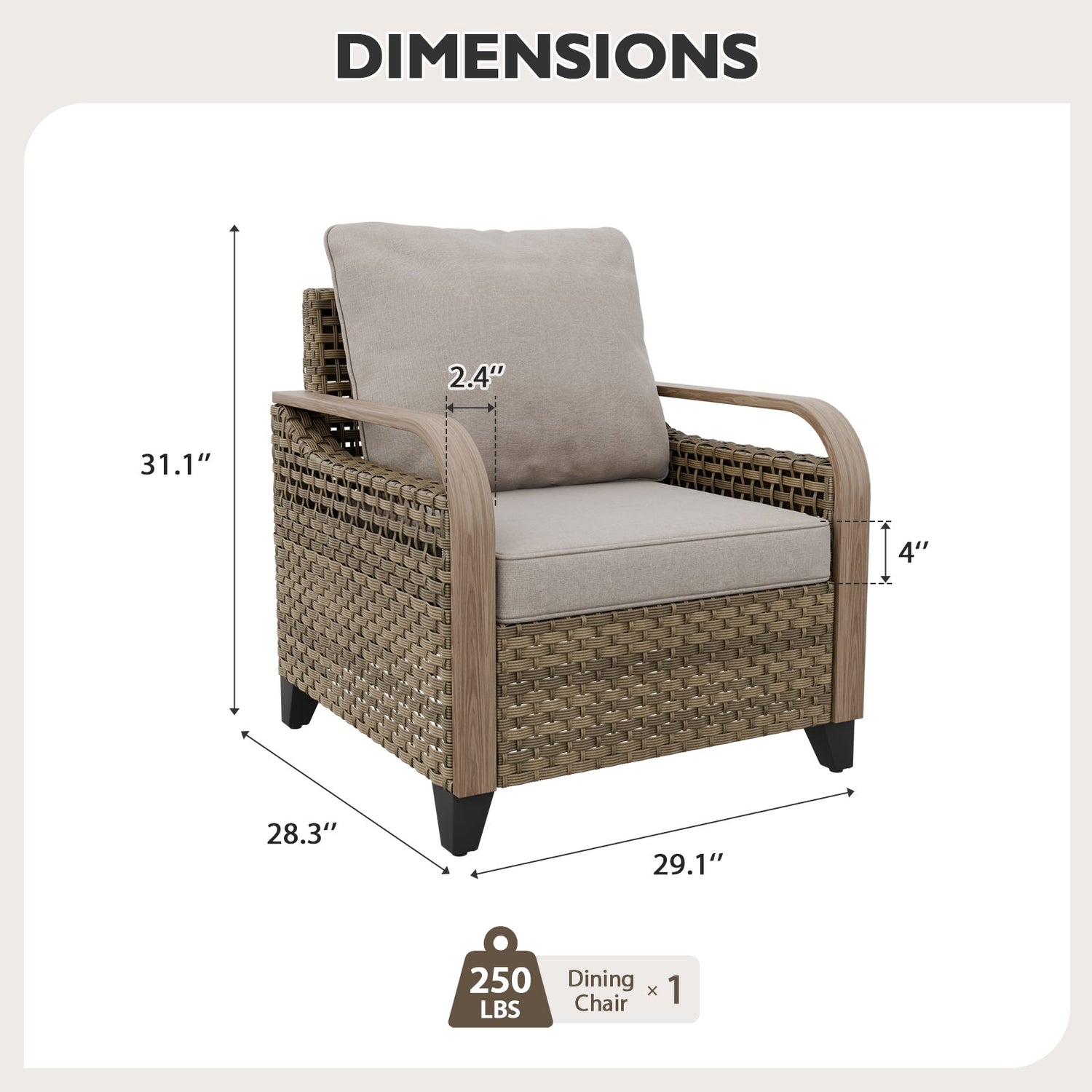 BUILT TO LAST: The rattan patio chair is constructed with hand-woven, weather-resistant PE rattan over a powder-coated steel frames resulting in chairs that are highly durable and able to withstand the elements. They are built to last and can support up to 250 lbs of weight.