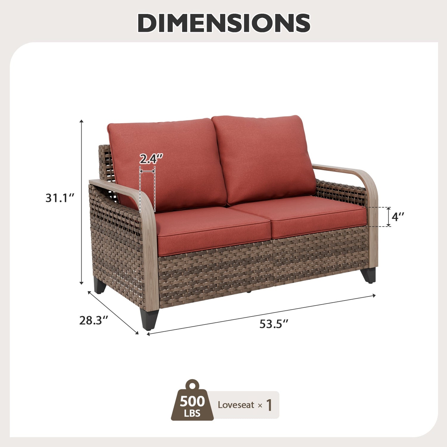 MODERN DESIGN: The EAGLE PEAK outdoor patio wicker loveseat sofa is a 2-seater rattan sofa designed for outside patio, gardens, backyard, deck and balcony. Modern looking, making it a great complement to your outdoor space.