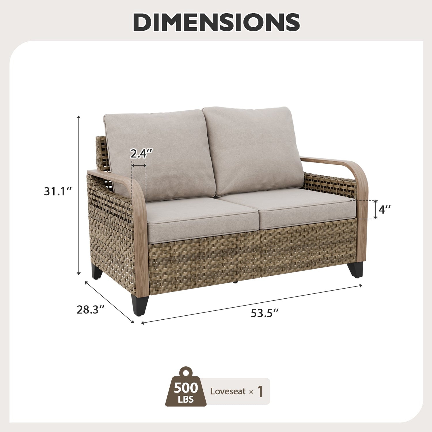 MEASUREMENT: Measuring at 53.5'' W x 28.3'' D x 31.1'' H, capable of supporting up to 500 lbs. Suitable for various outdoor settings such as the patio, deck, front porch, or garden, this patio furniture is also a great gift for family and friends.