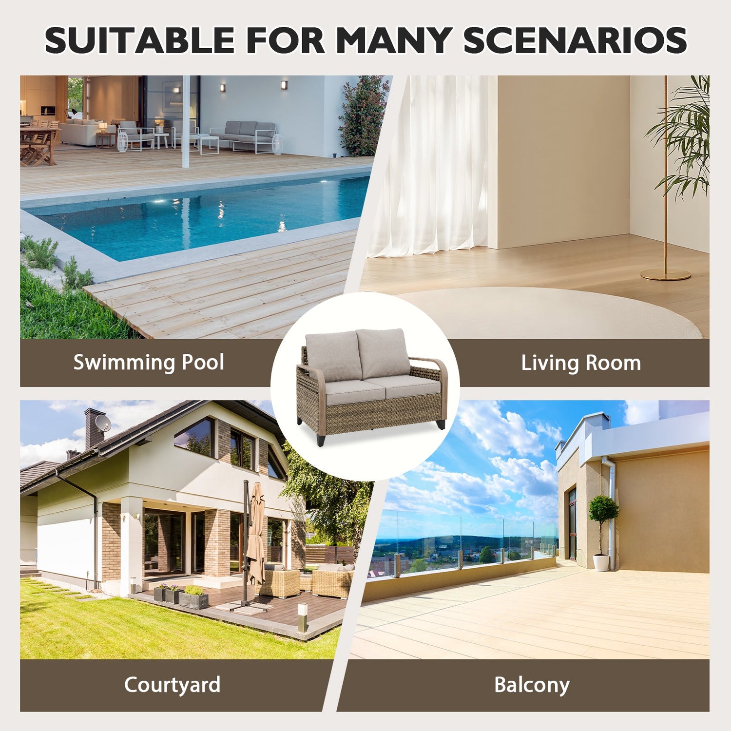Modern Wicker Outdoor Furniture 2 Seat Loveseat Sofa , Brown/Gray