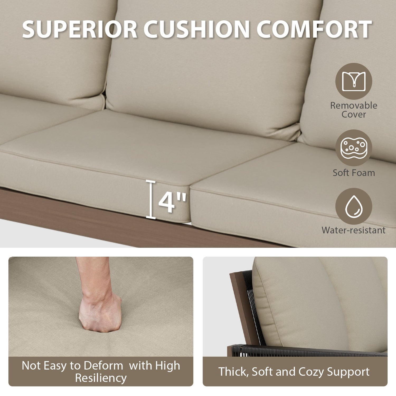 SUPERIOR CUSHION COMFORT: Generously padded with soft foam and wrapped in premium UV resistant Olefin fabric, the cushions provide a cozy, supportive feel for hours of relaxation. The covers are equipped with a convenient zipper closure for easy removal, making cleaning and maintenance a breeze.