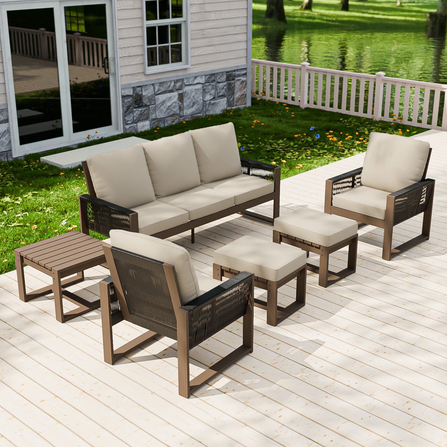 Natural Wood Outdoor Patio Furniture,Sofa 2 Patio Chairs 2 Ottomans and Side Table, 6 pcs - Beige is backordered and will ship as soon as it is back in stock.