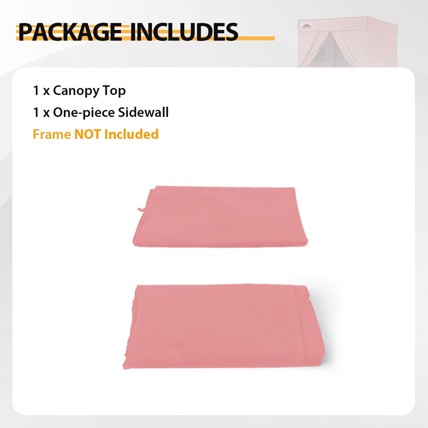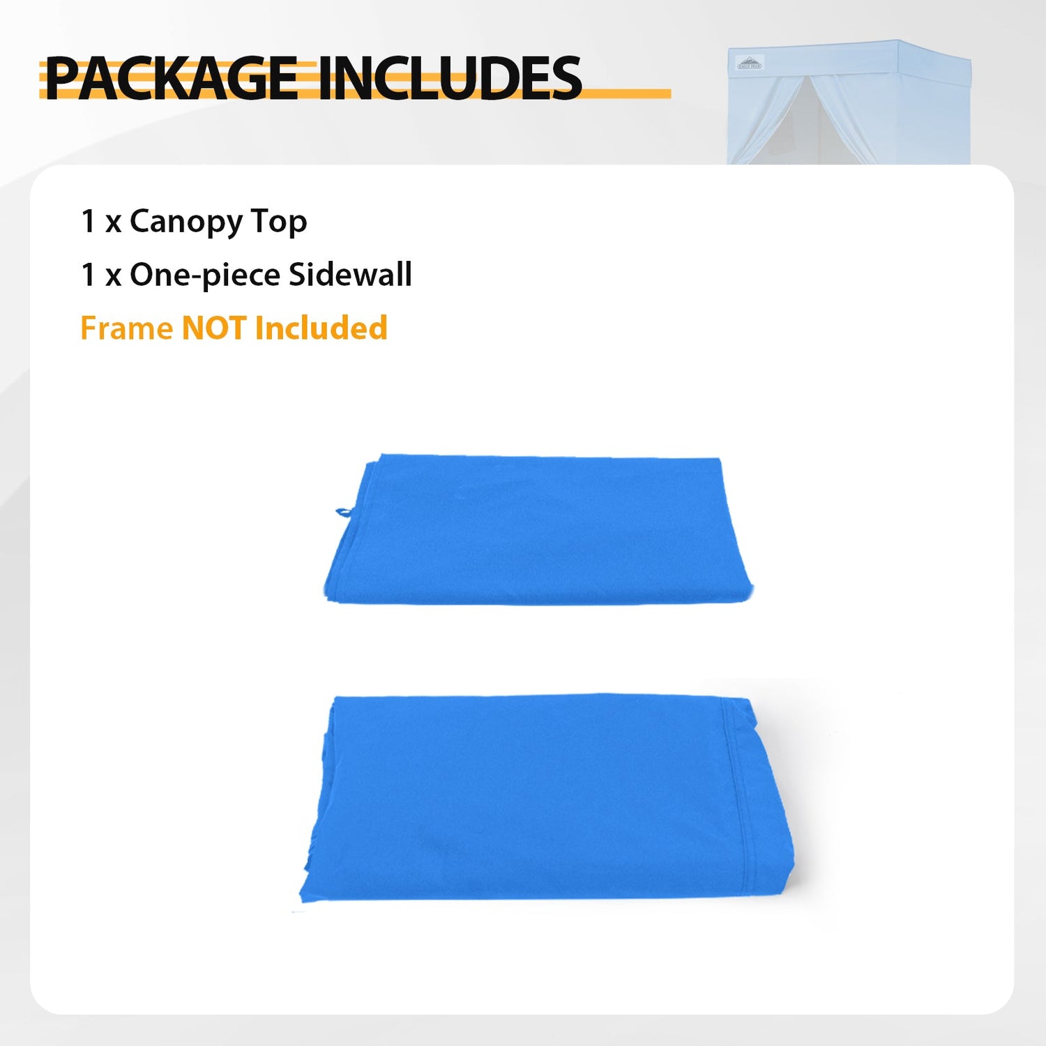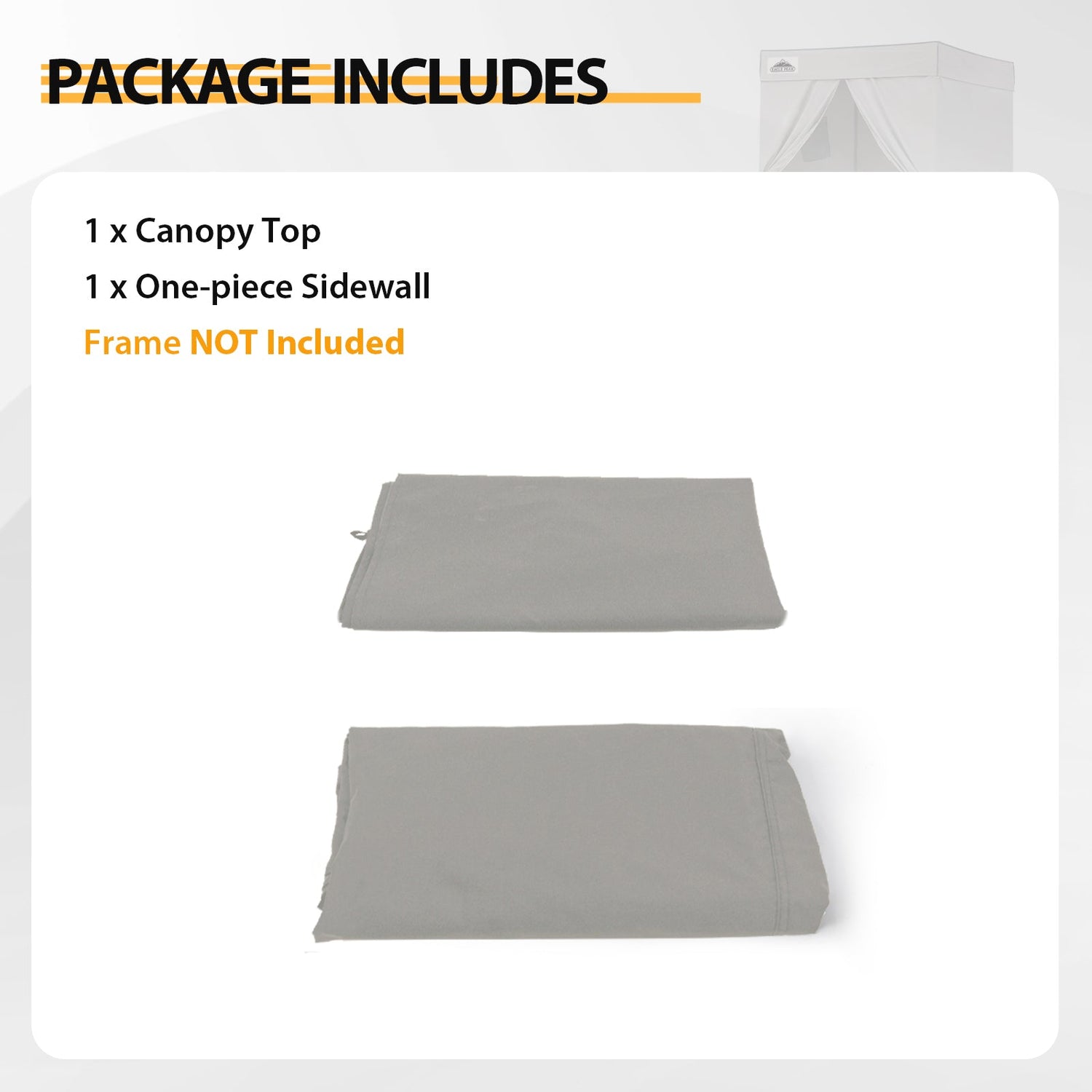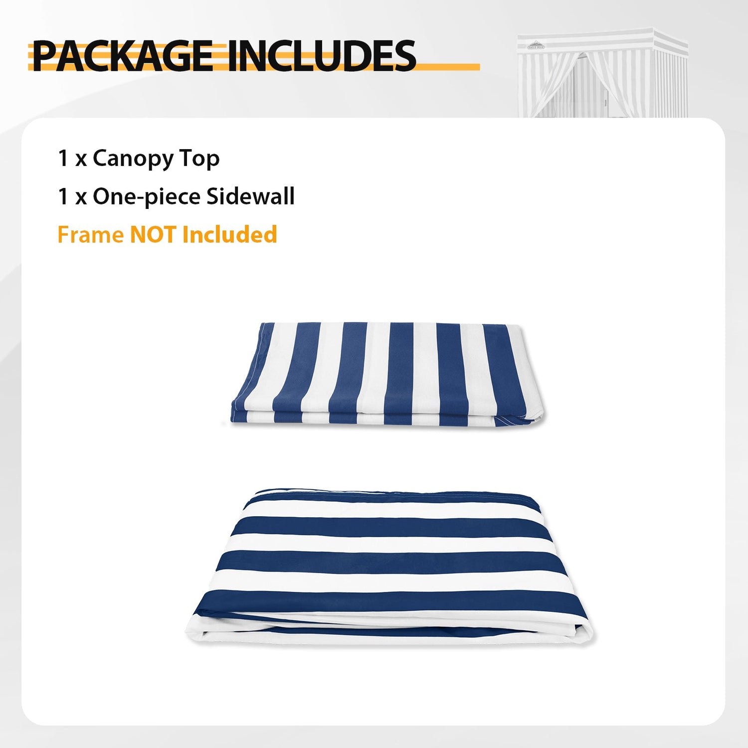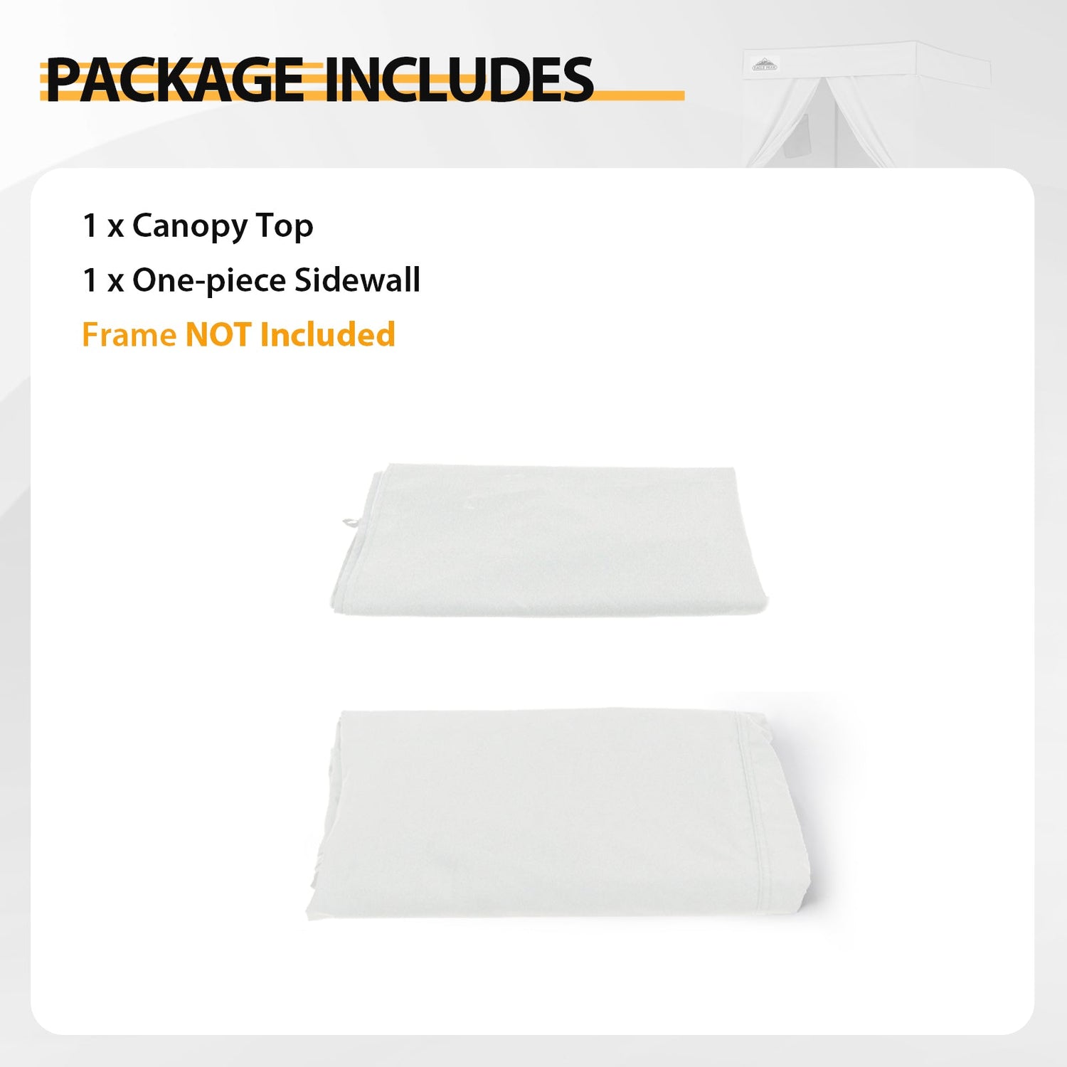 Complete Replacement Kit: Includes 1 canopy top cover and 1 single-piece four-wall enclosure with zippered door. Metal frame is NOT included