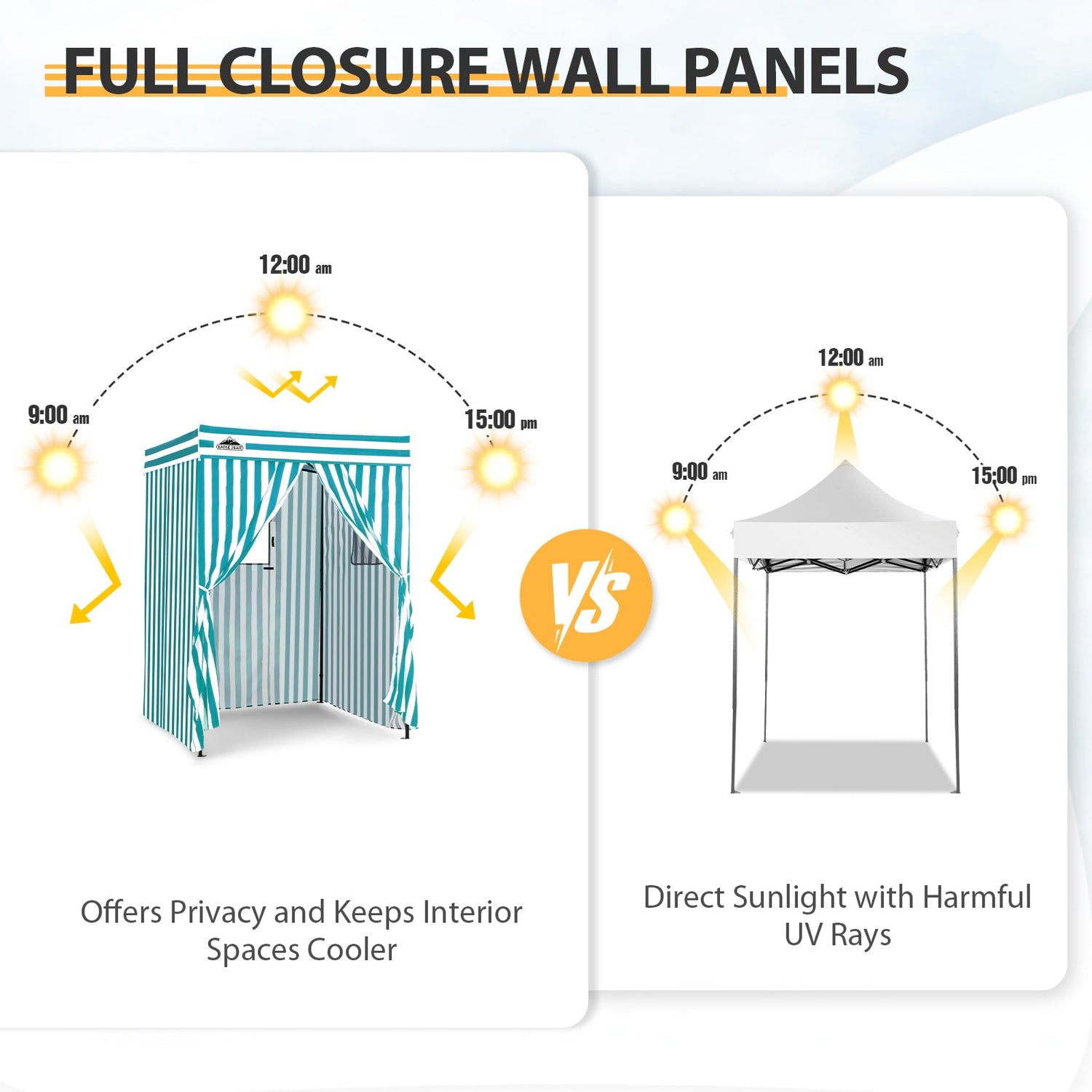 Functional Design: Made from durable 140g polyester, the fabric provides basic protection from sun and light moisture. Sidewalls feature an easy access zippered entrance and a built-in mesh pocket for towels or clothes