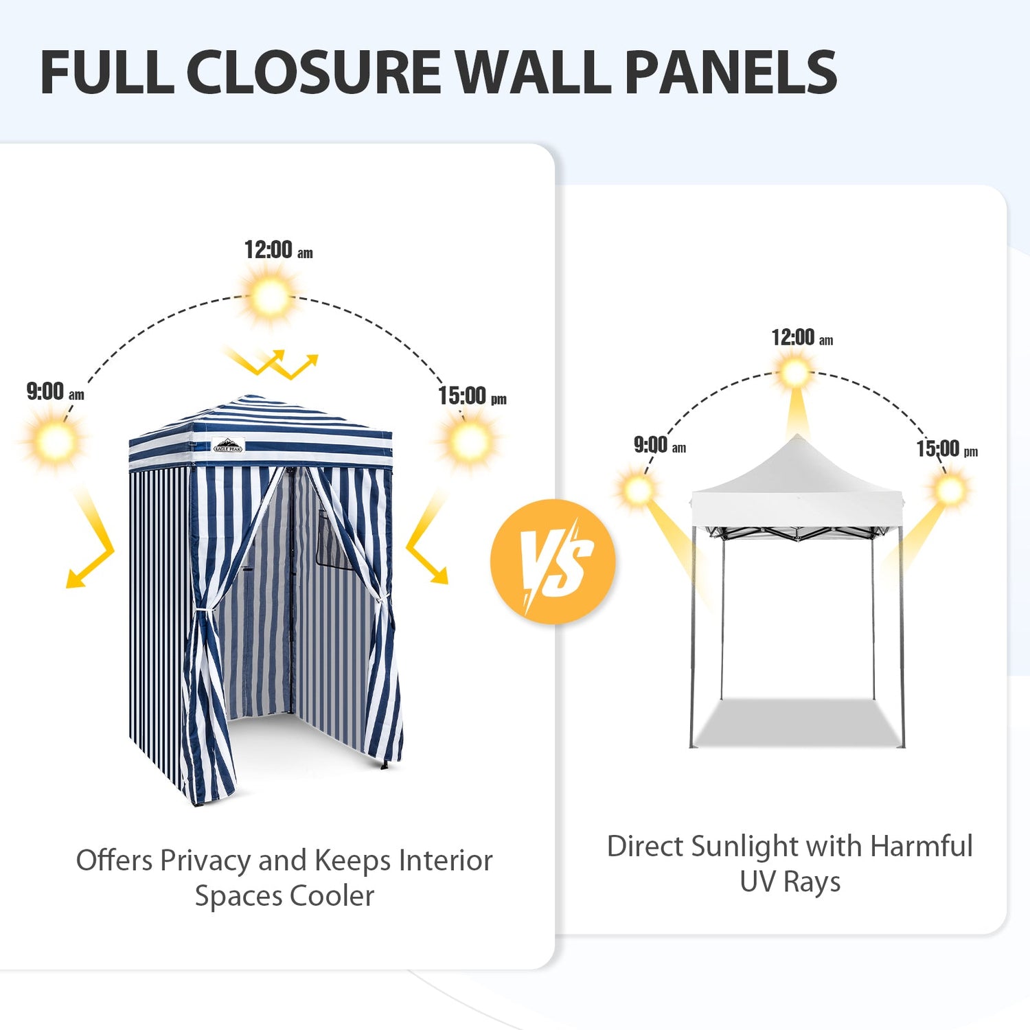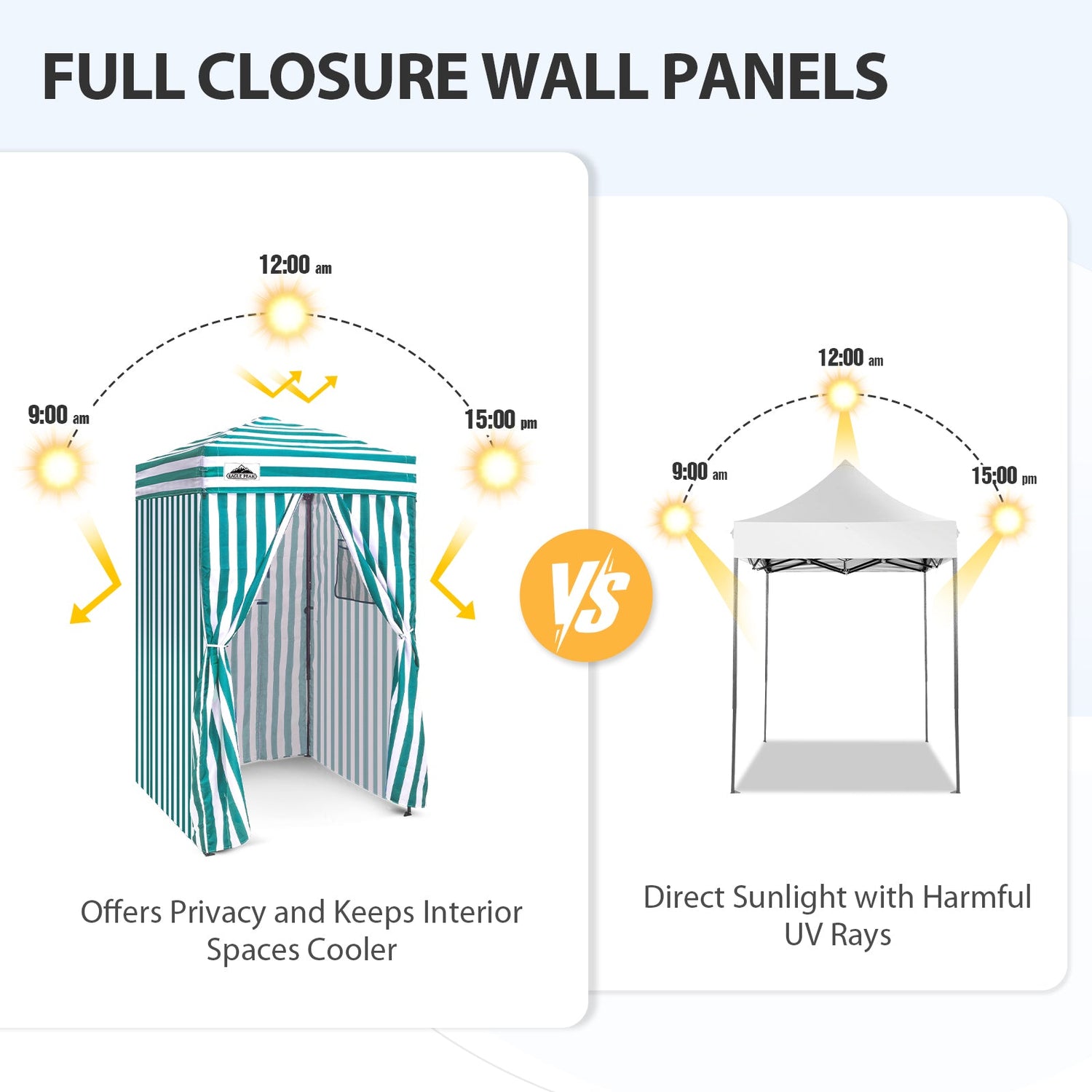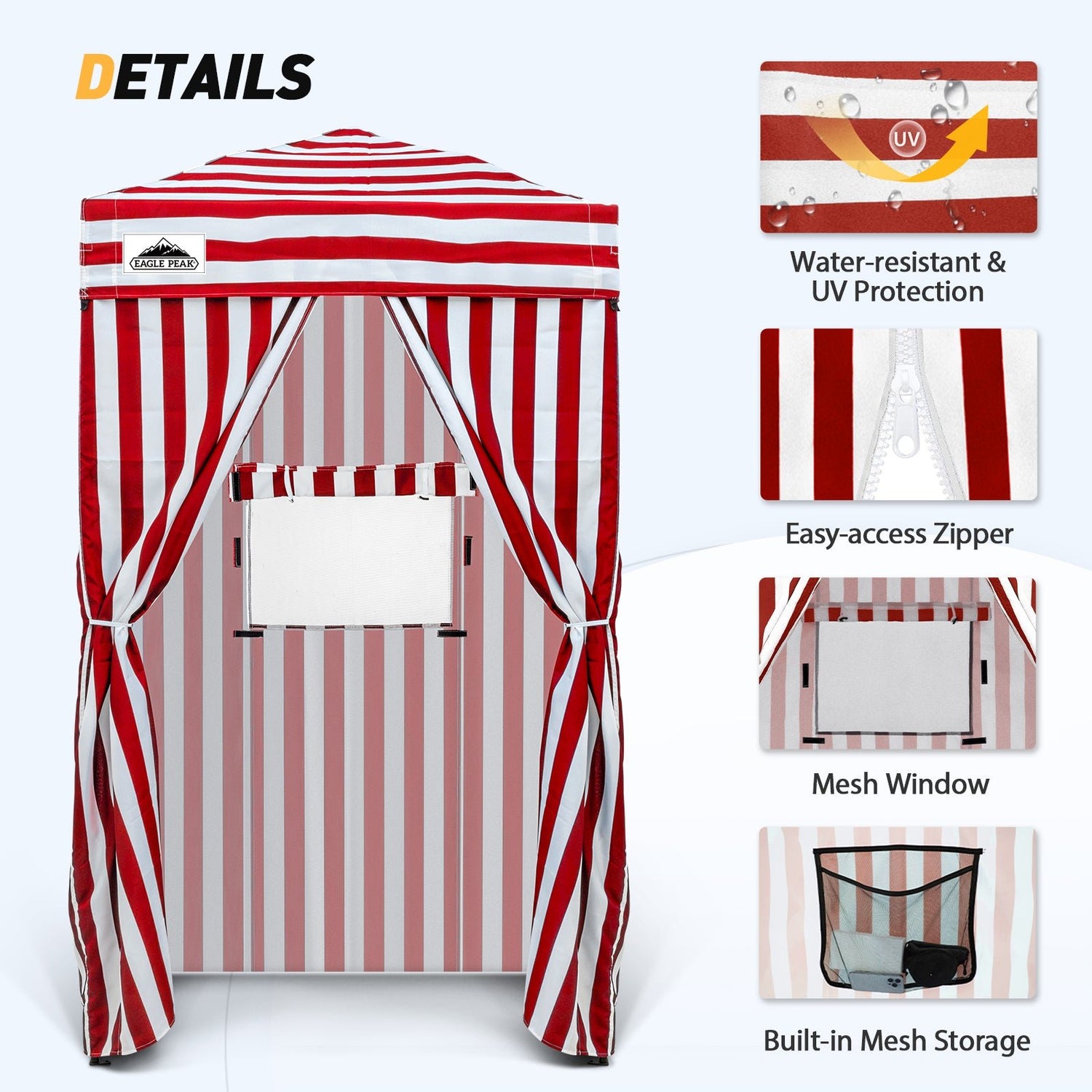 Functional Design: Made from durable 140g polyester, the fabric provides basic protection from sun and light moisture. Sidewalls feature an easy access zippered entrance and a built-in mesh pocket for towels or clothes
