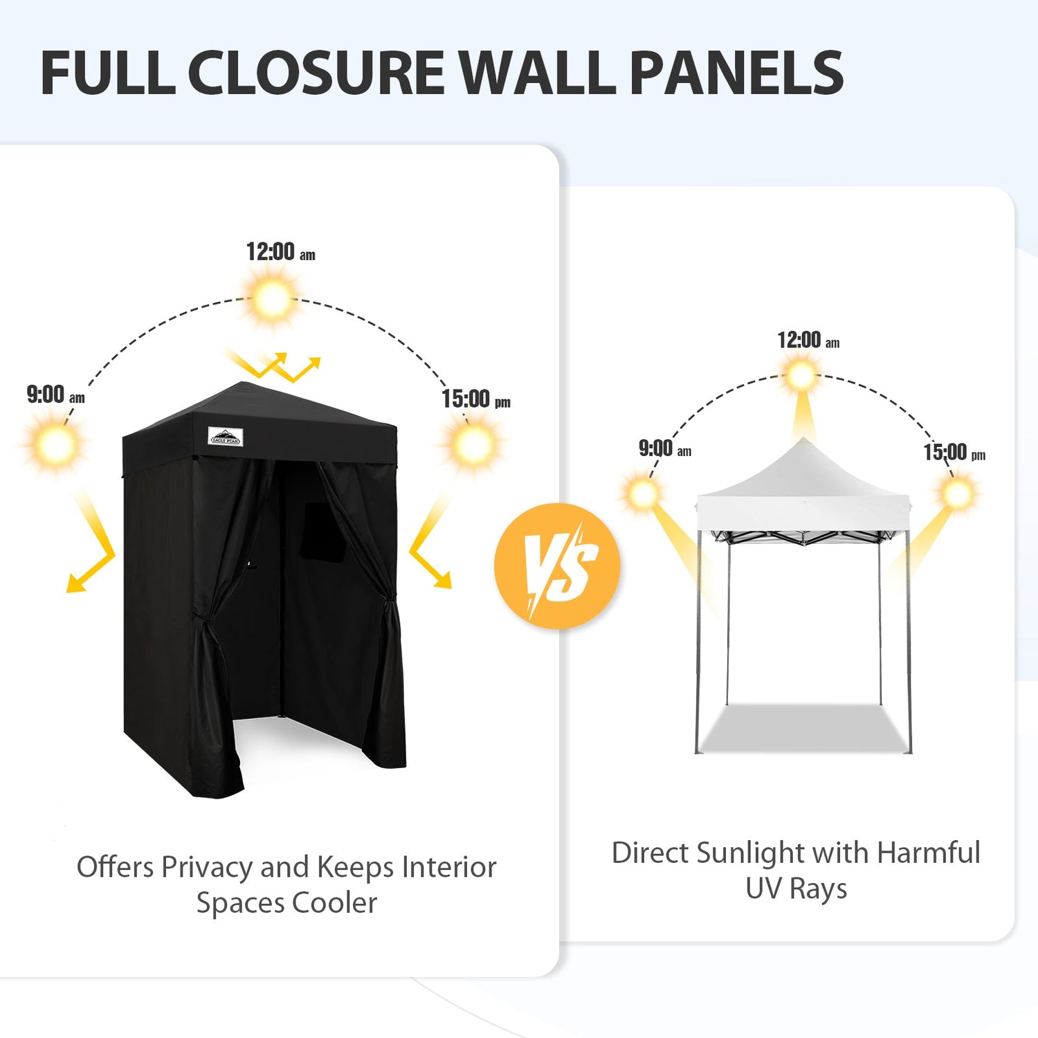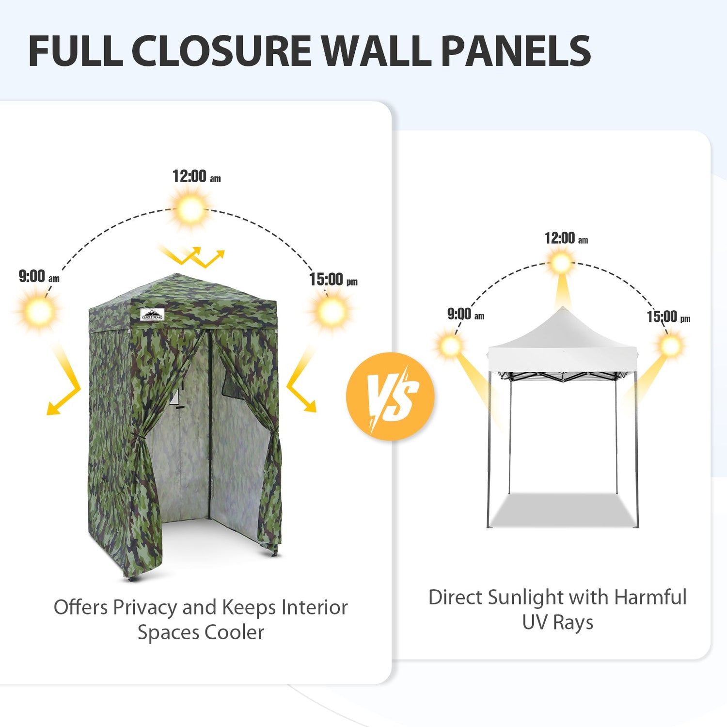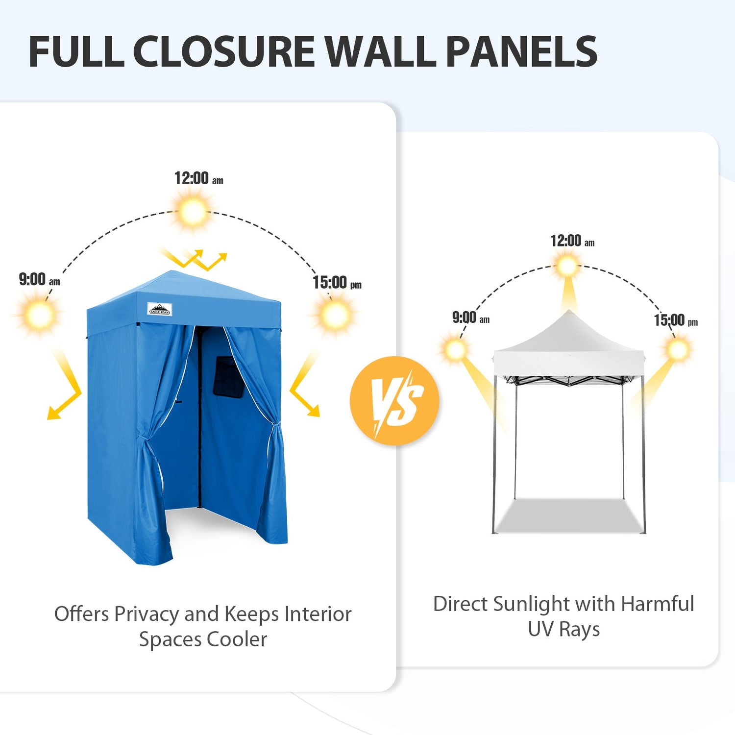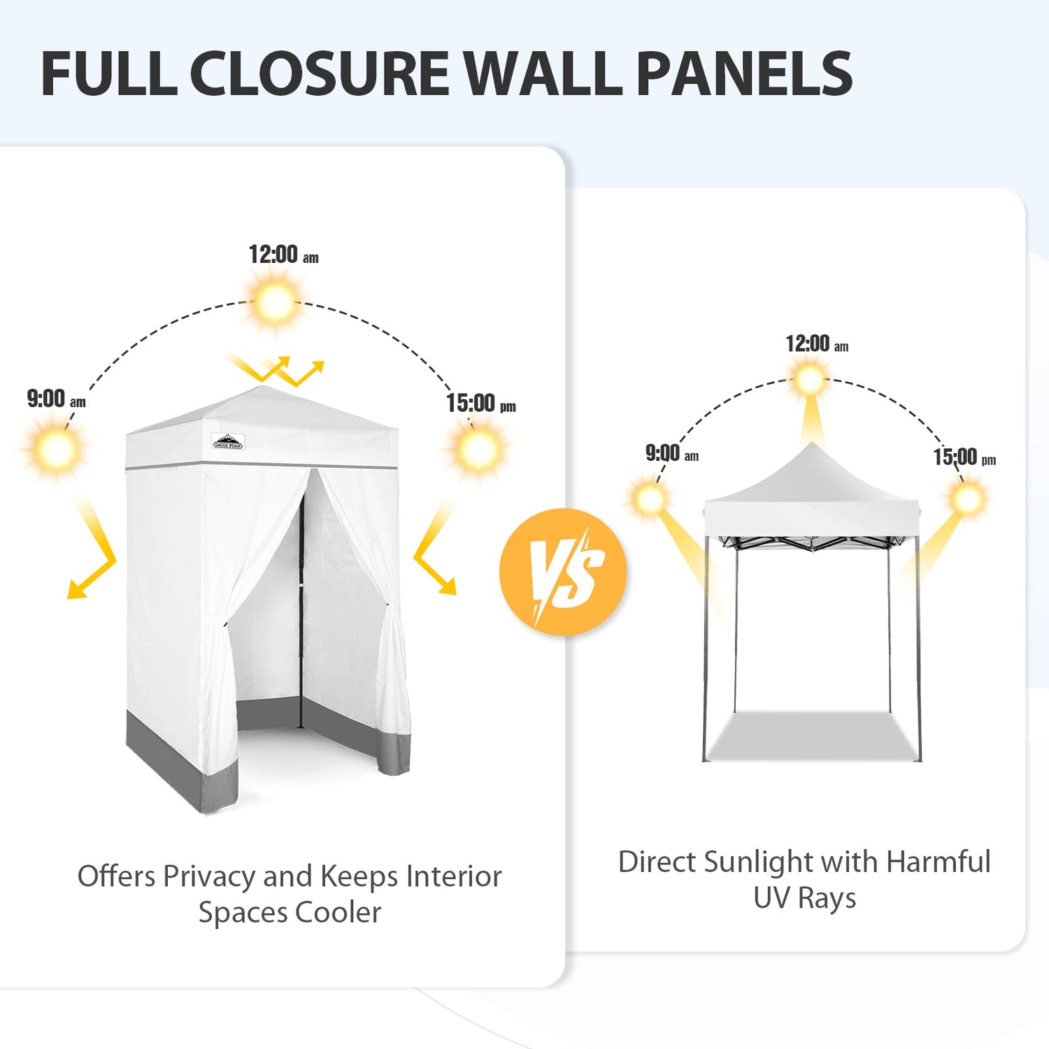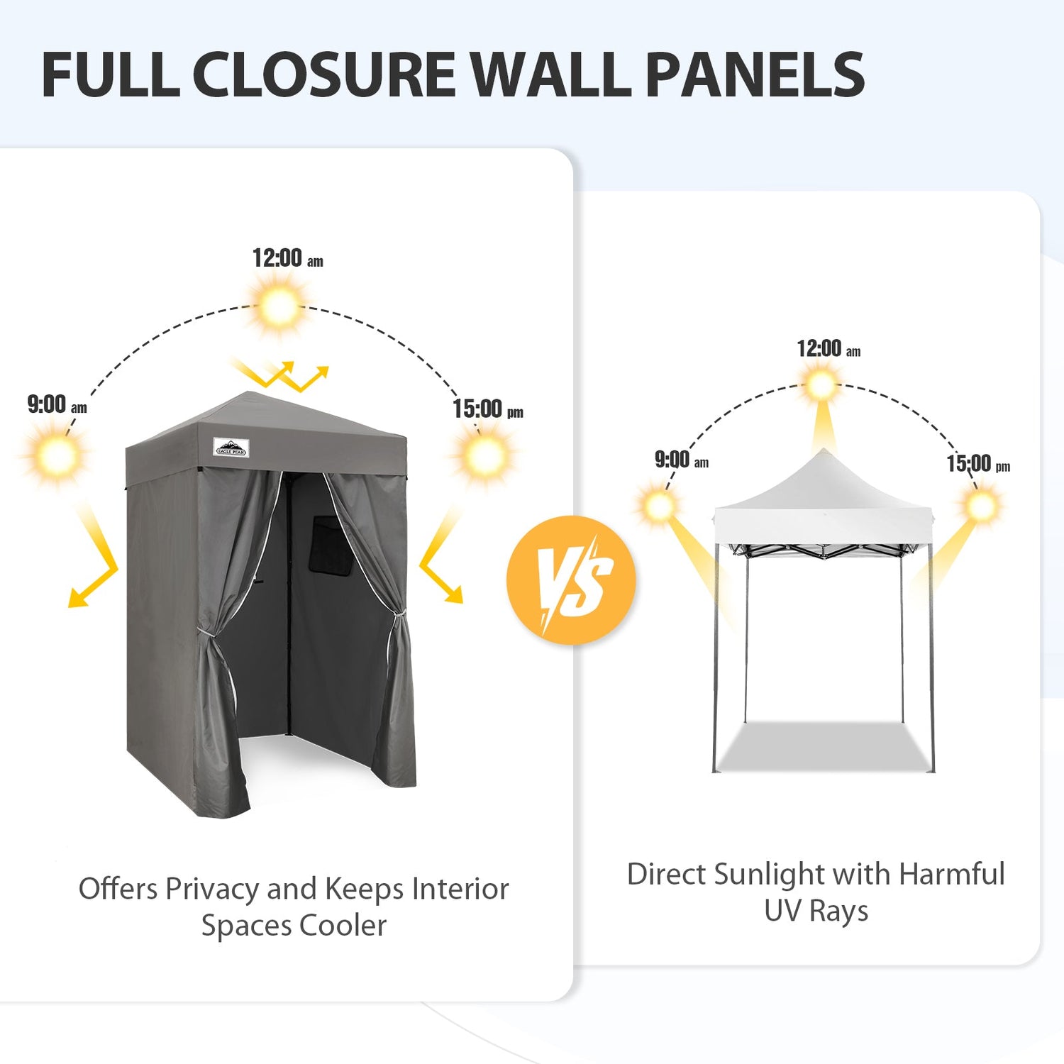 Easy Setup: Walls easily attach to the canopy trusses and frame legs using durable Velcro tab straps. No tools or additional hardware required