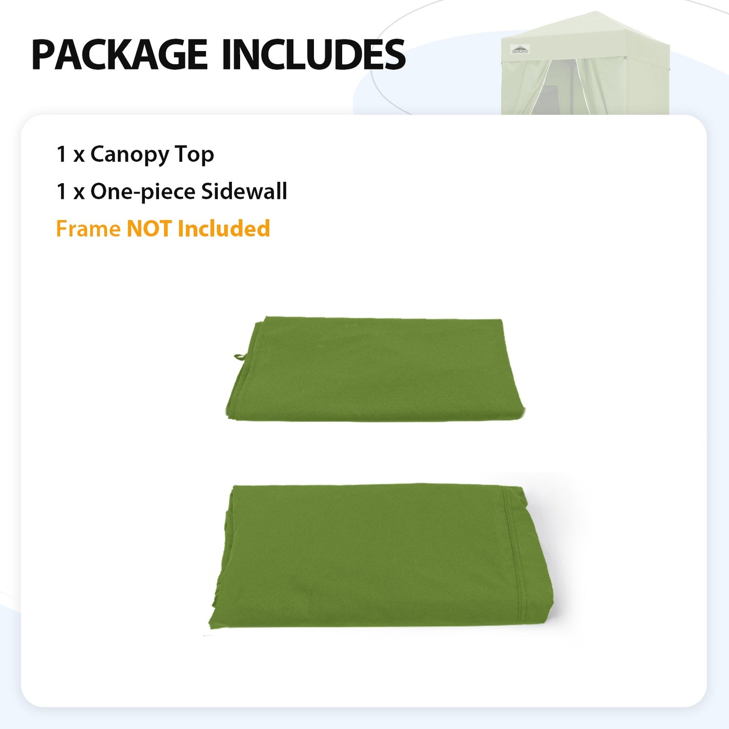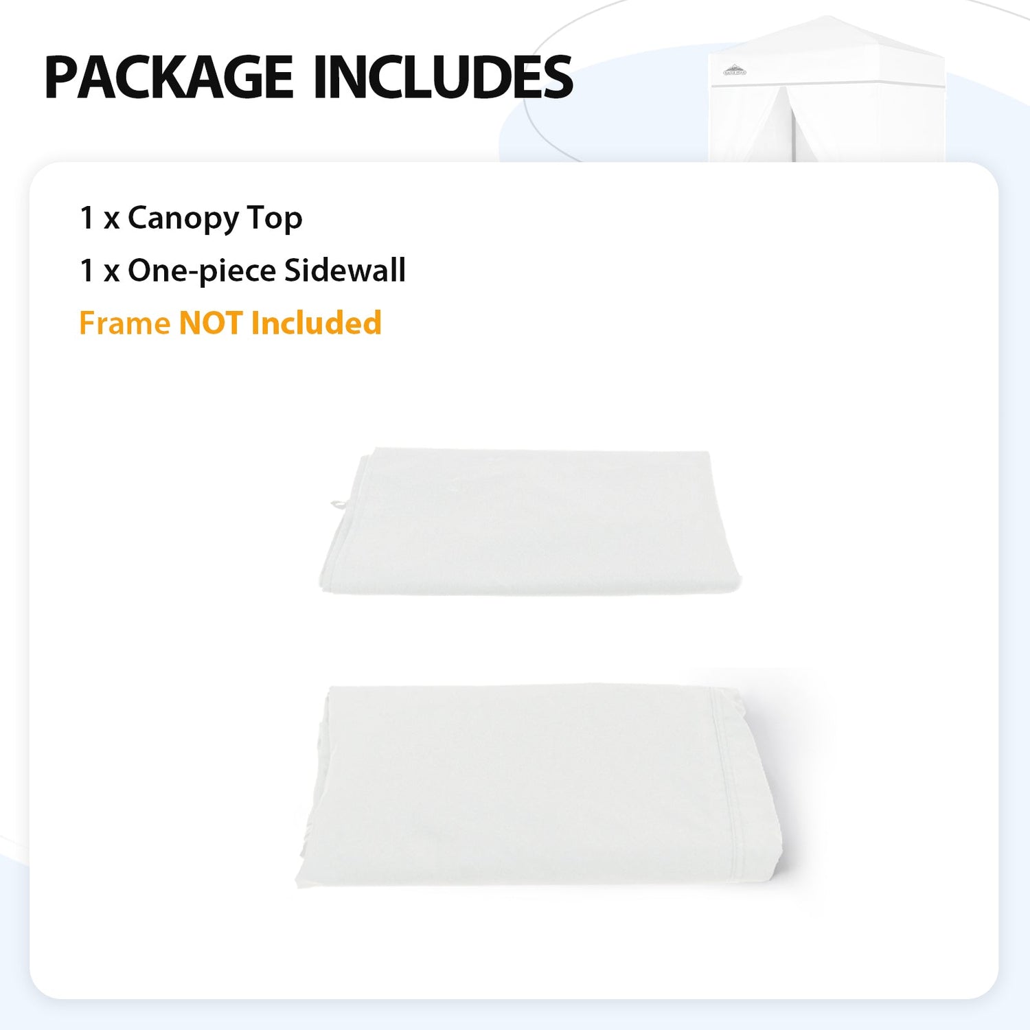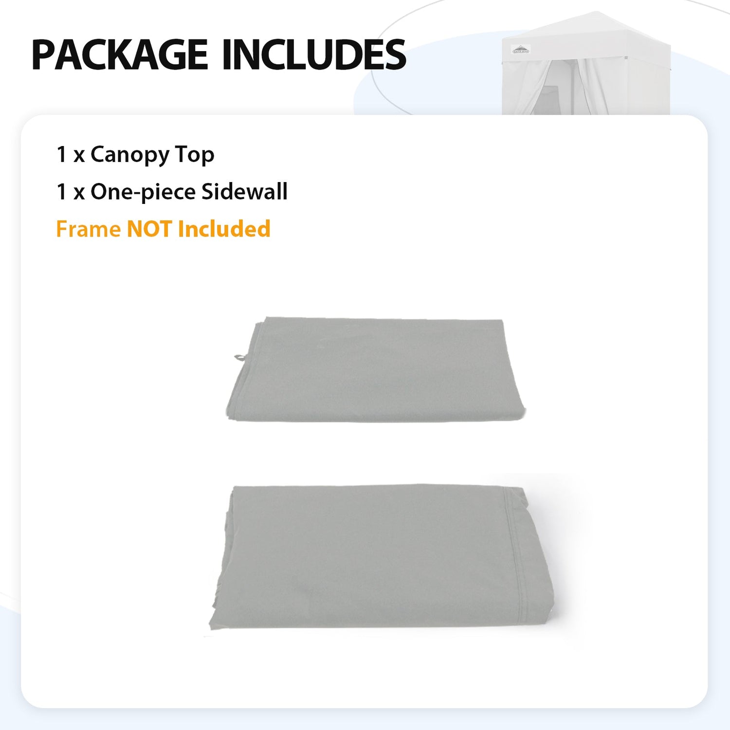 Complete Replacement Kit: Includes 1 canopy top cover and 1 single-piece four-wall enclosure with zippered door. Metal frame is NOT included