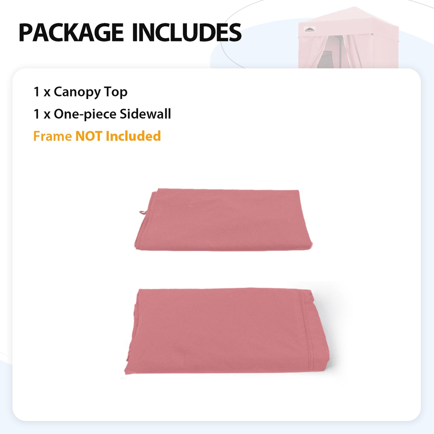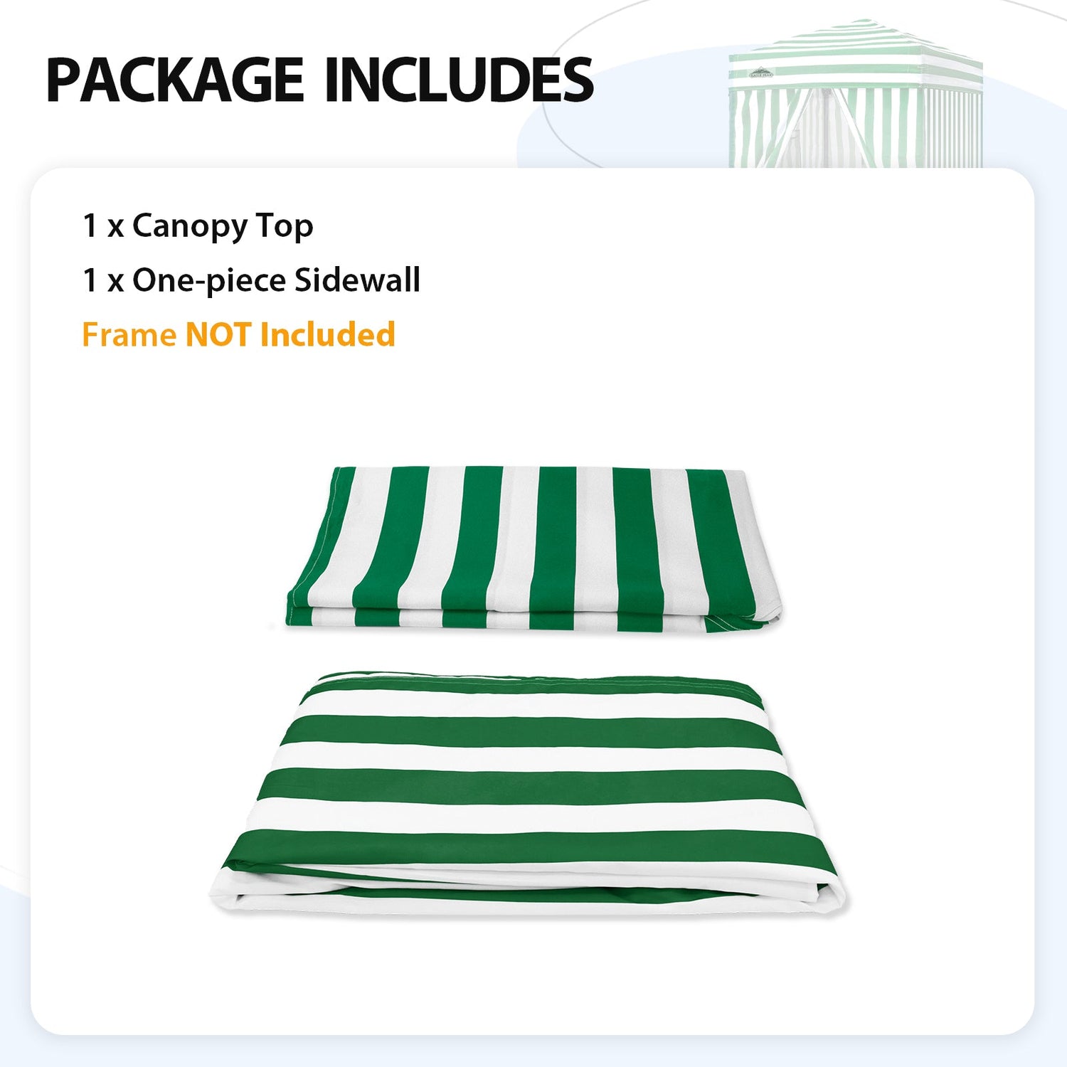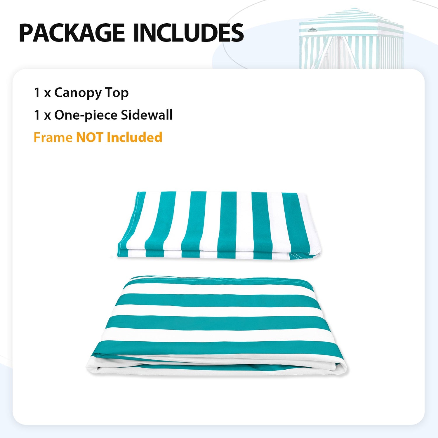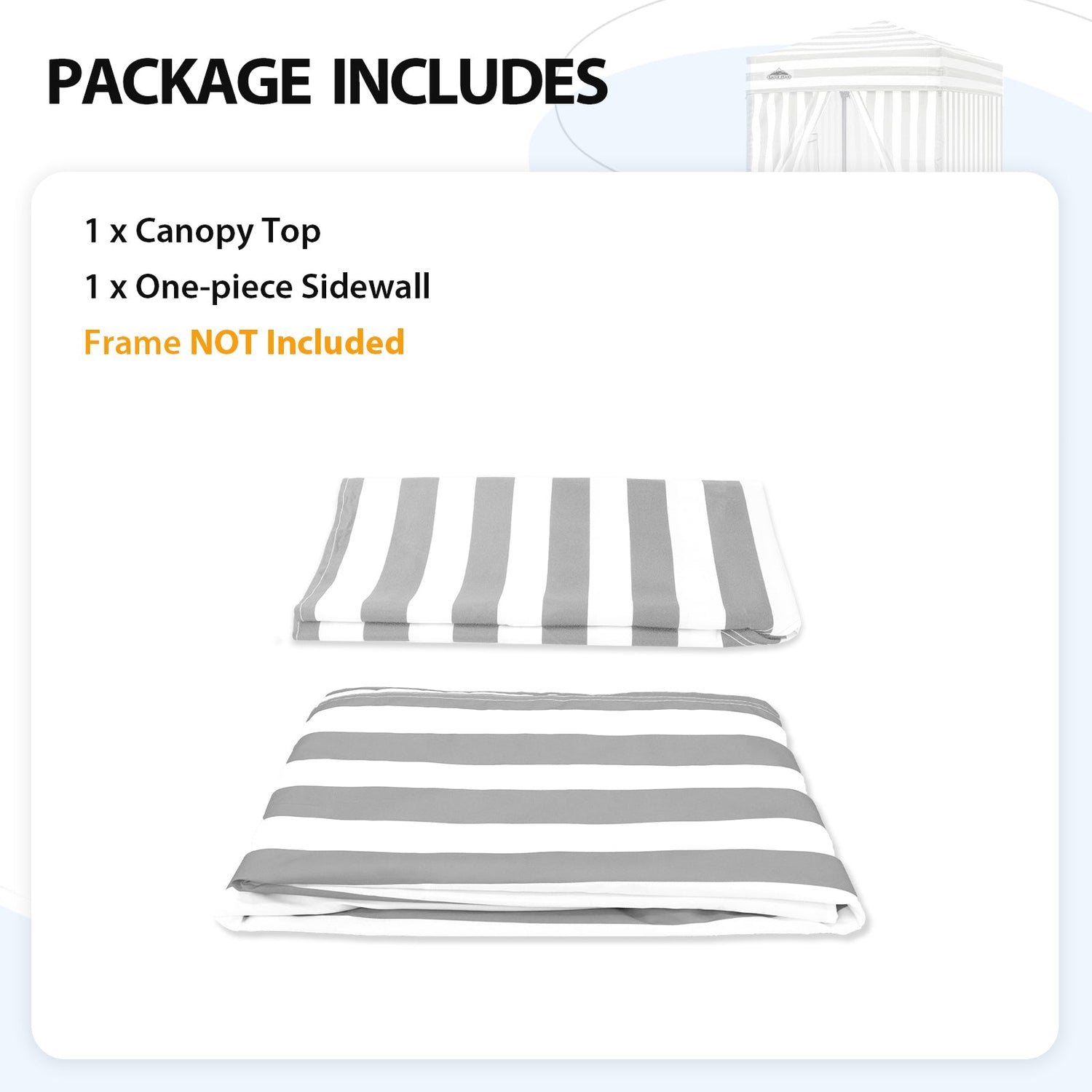 Complete Replacement Kit: Includes 1 canopy top cover and 1 single-piece four-wall enclosure with zippered door. Metal frame is NOT included