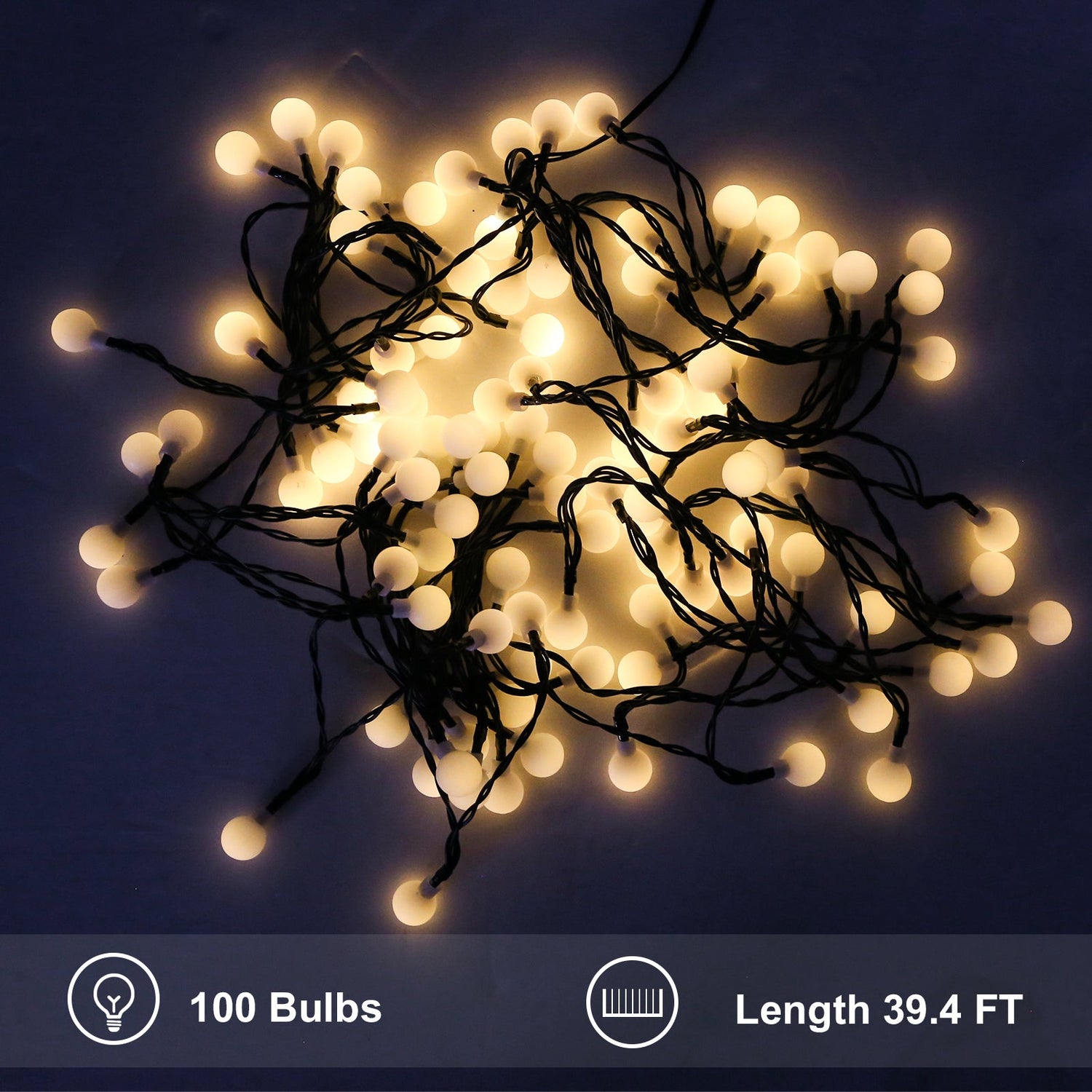 Wide Application String Lights: It is 100 bulbs over 32ft with a 39ft overall length; these high-quality ball string lights are perfect for creating a cozy ambience in various settings, such as homes, gardens, and events like Christmas, Thanksgiving, tent, awning, holiday, and party decor. They also make great gift options for family and friends.