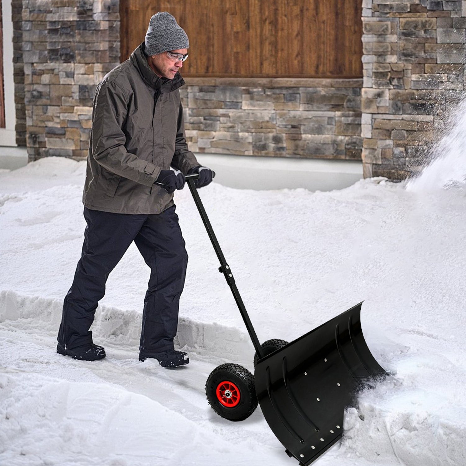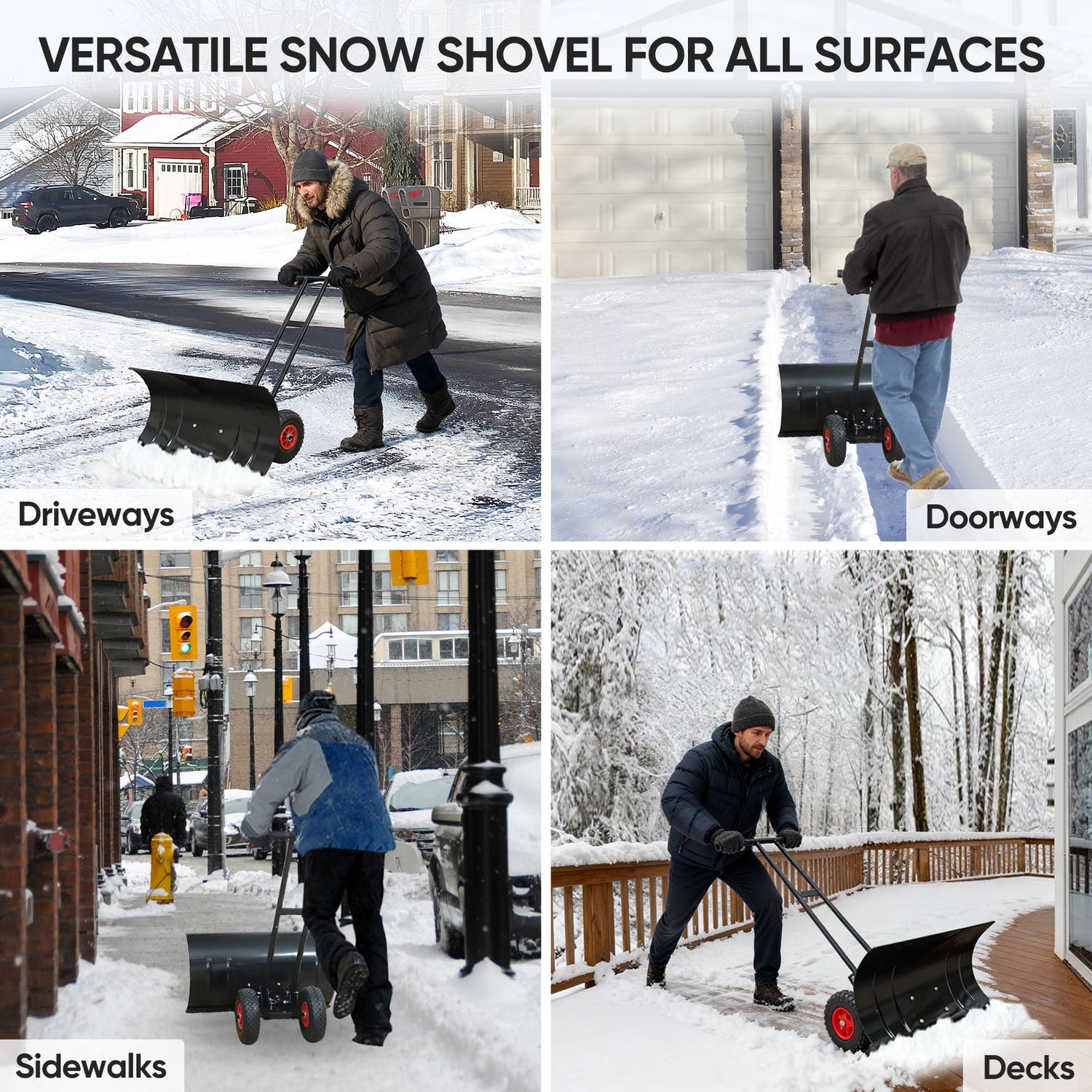 EFFORTLESS SNOW REMOVER: Clear snow quickly with a 29” x 16.5” steel blade and 10” wheels. This wheeled snow shovel glides easily across sidewalks, patios, and driveways—perfect for personal snowplow use and fast driveway snow removal